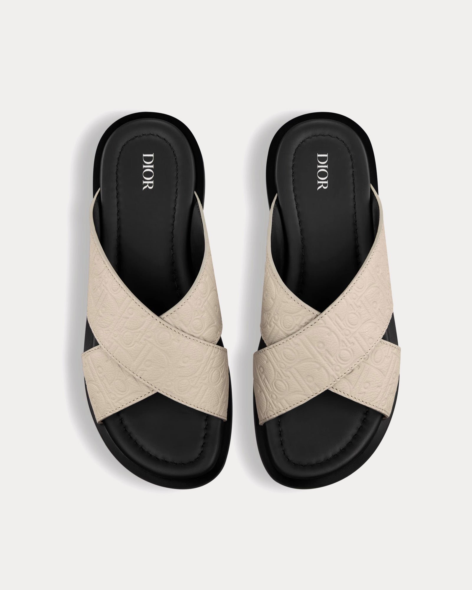 Les sandales DiorAlias pour homme en beige Dior gravity sont confectionnées en cuir et présentent une tige en cuir de veau grainé embossé, des semelles intérieures en cuir de veau, des semelles extérieures en caoutchouc avec inserts antidérapants Dior Oblique et une construction soudée. Fabriquées en Italie.