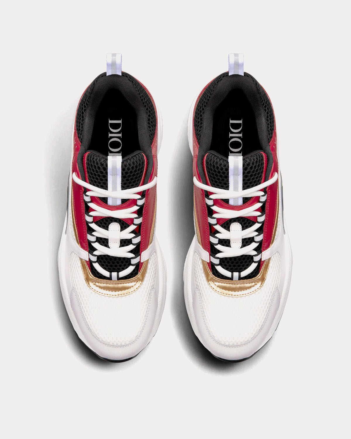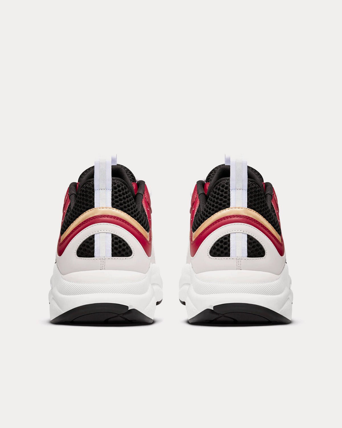 Baskets basses Dior B22 en mesh technique blanc et noir avec cuir de veau bordeaux, blanc et doré