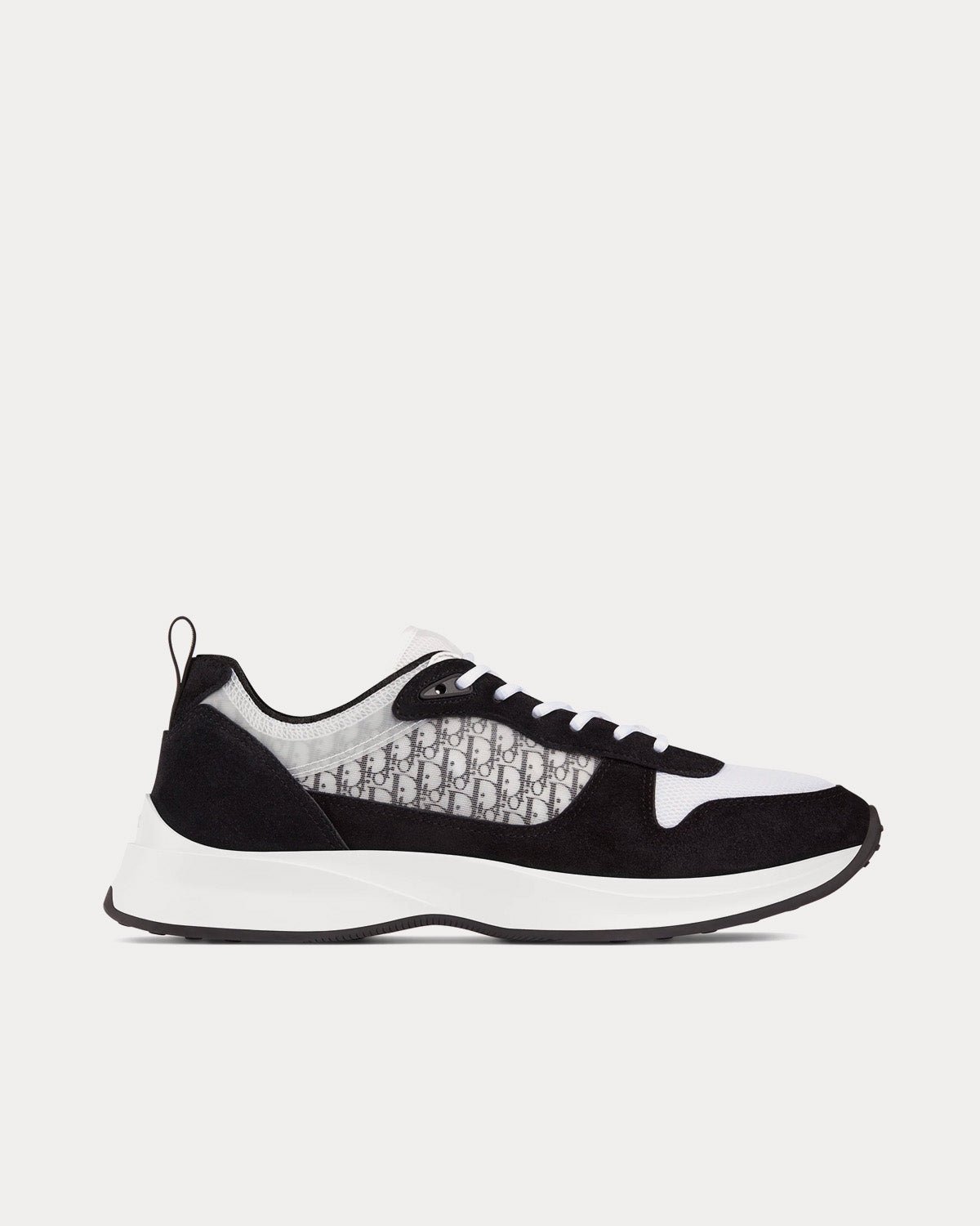 Baskets basses Dior B25 en daim noir avec mesh technique blanc et toile Dior Oblique noire