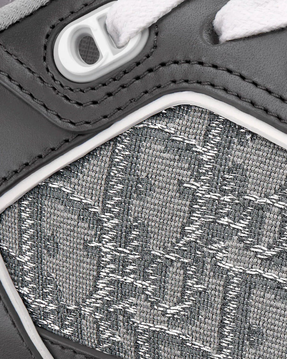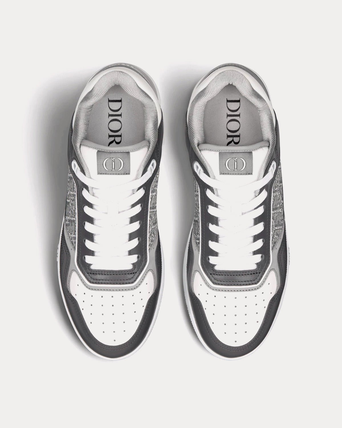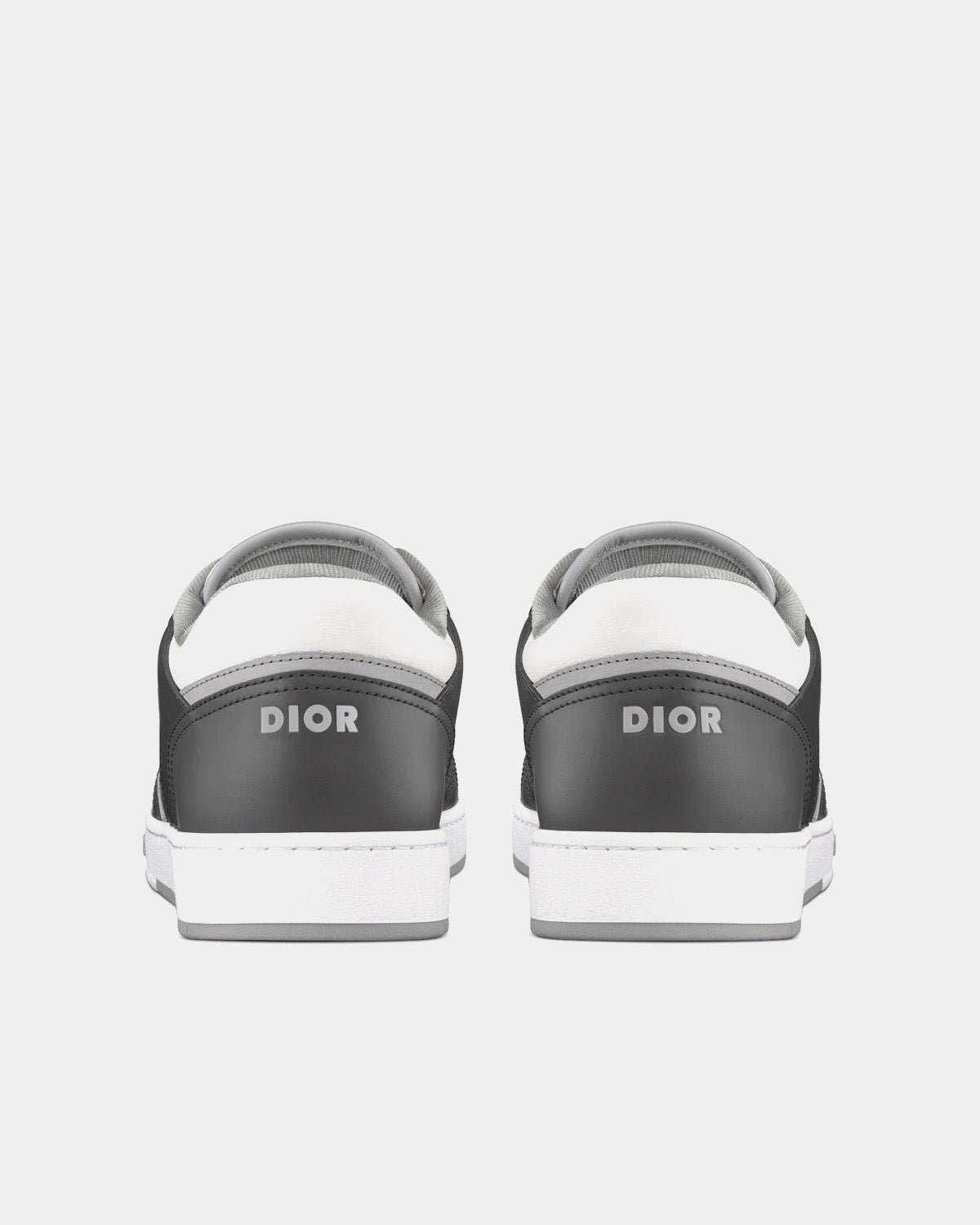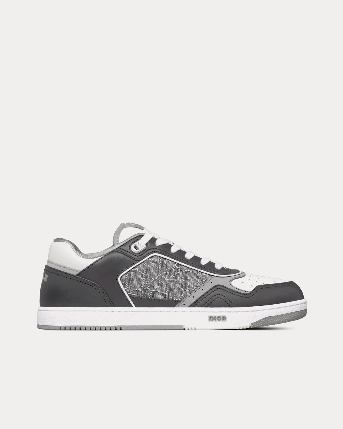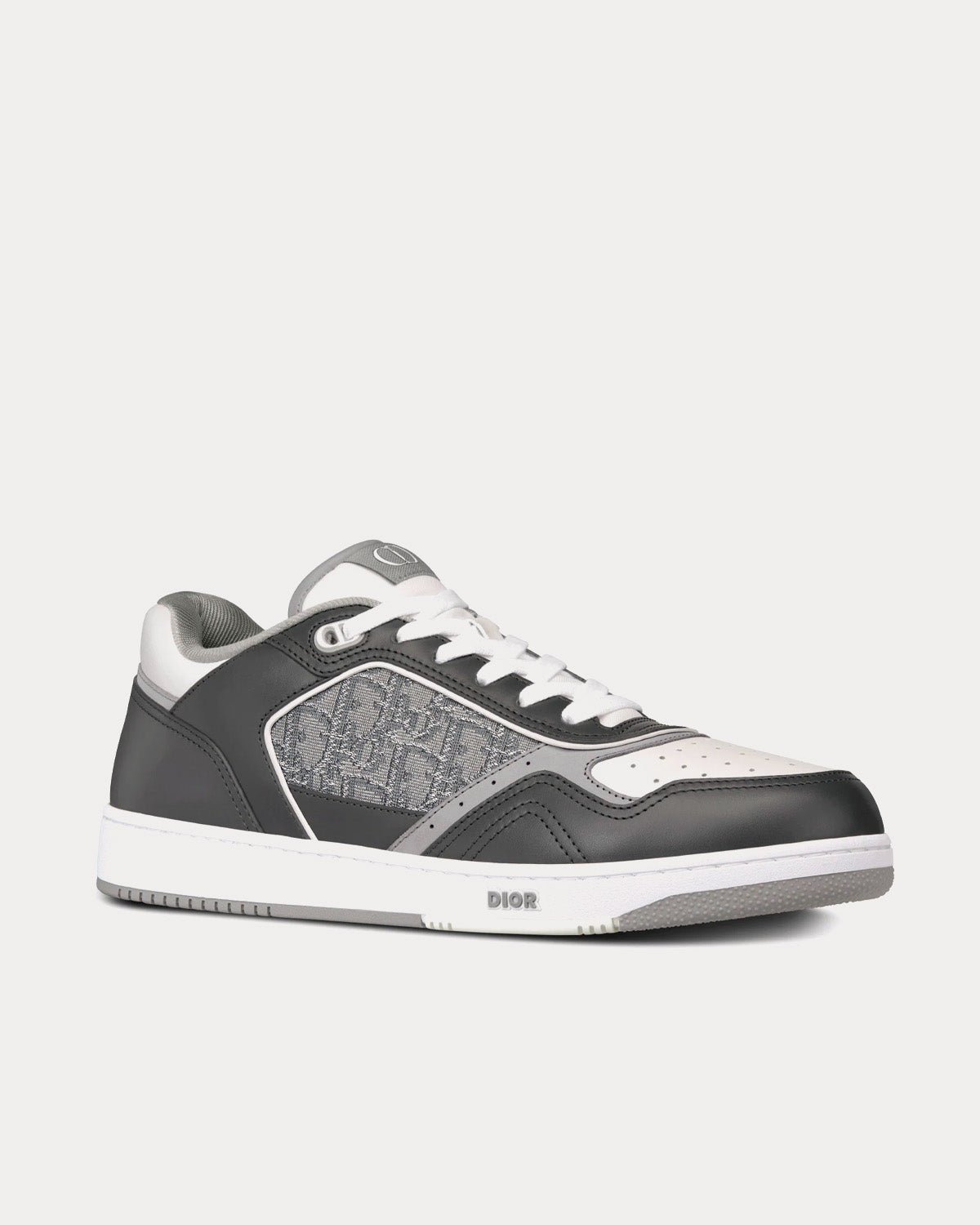 Baskets basses Dior B27 en cuir de veau lisse gris anthracite et blanc avec jacquard Dior Oblique et fil métallisé ruthénium