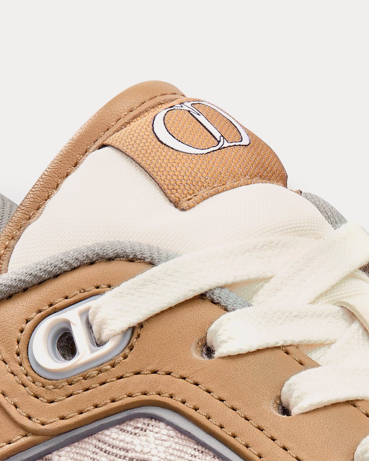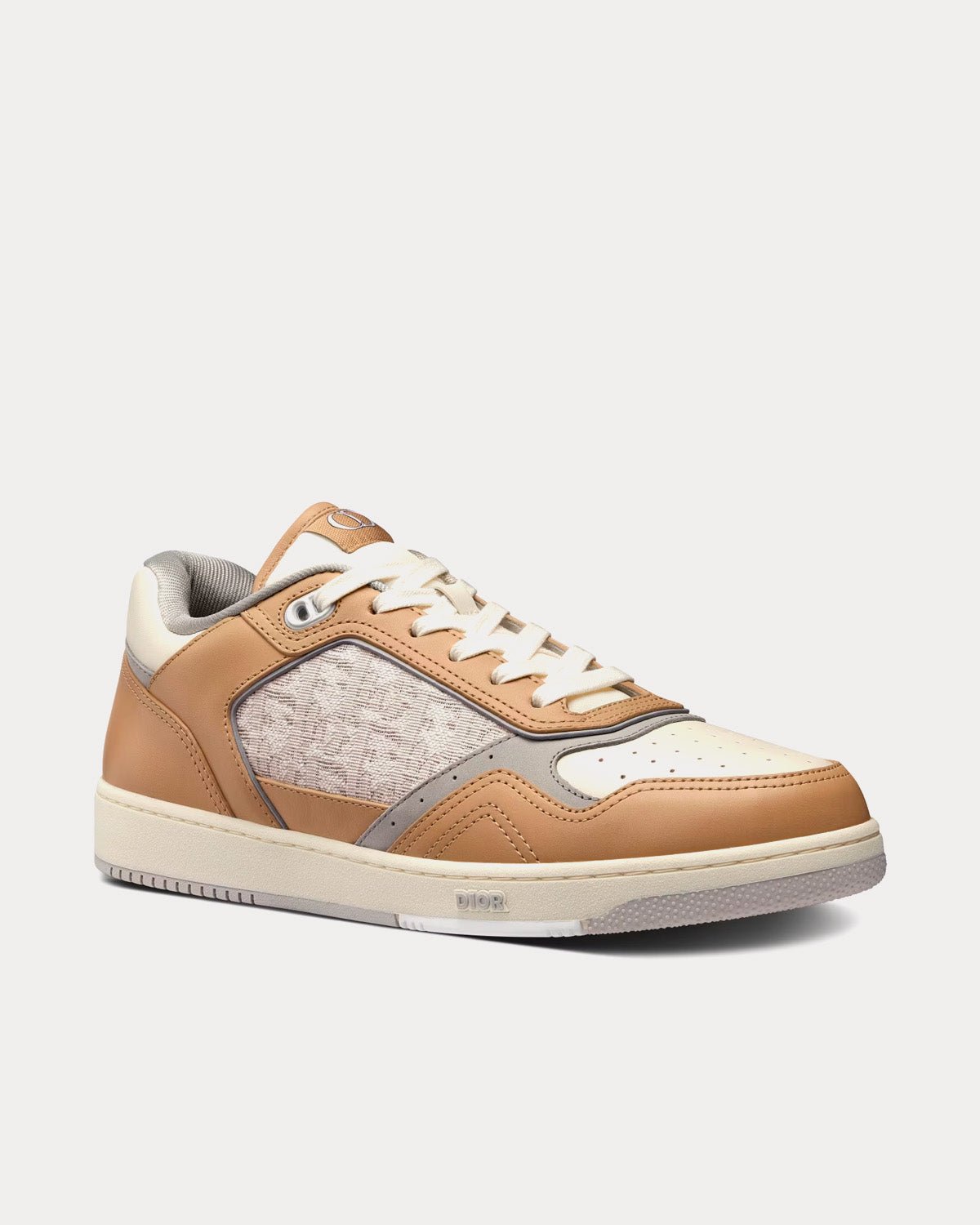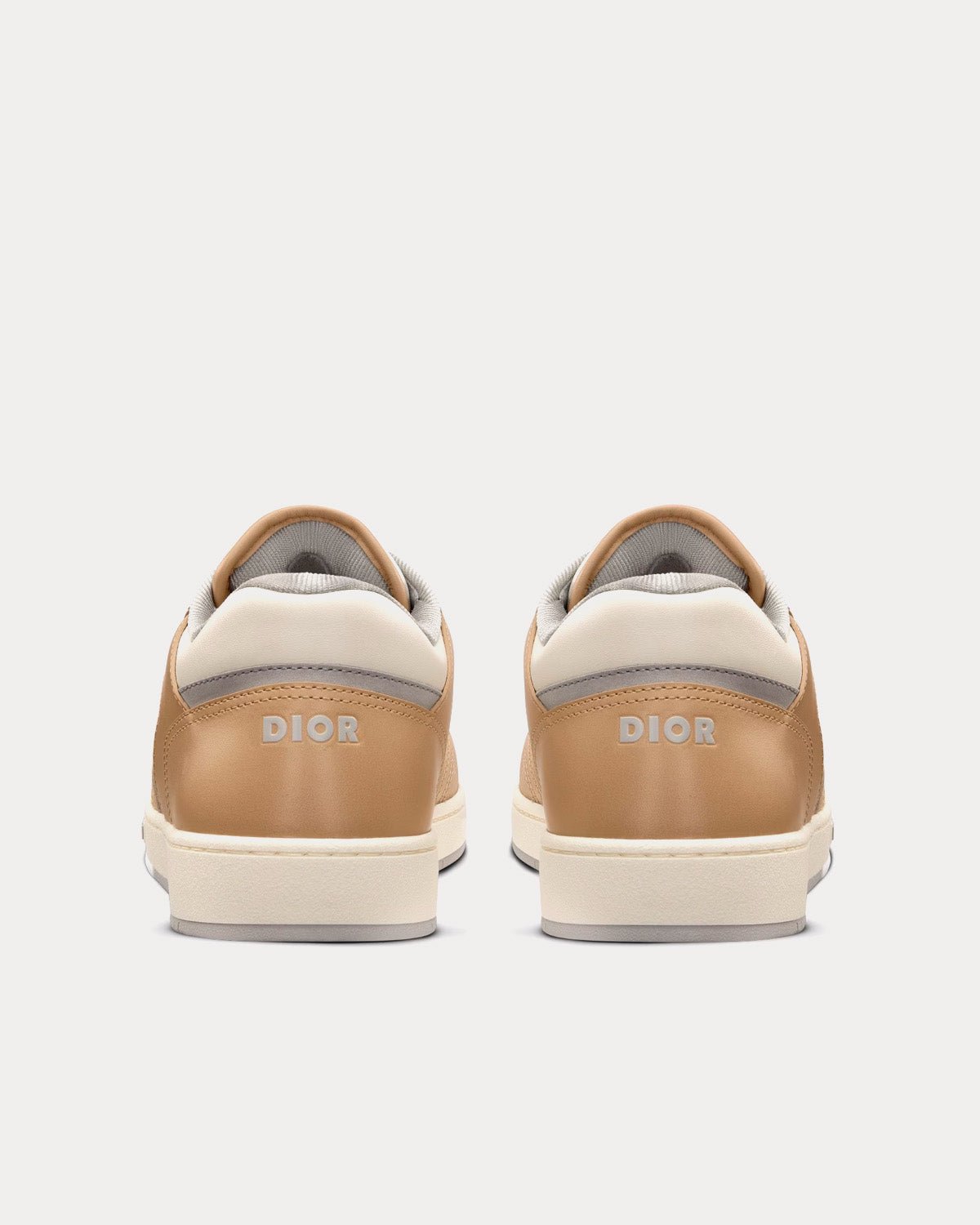 Baskets basses Dior B27 en cuir de veau lisse beige et crème avec jacquard Dior Oblique crème