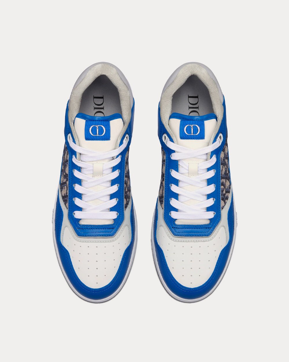 Baskets basses Dior B27 en cuir de veau lisse bleu, gris et blanc avec jacquard Dior Oblique beige et noirBaskets basses Dior B27 en cuir de veau lisse bleu, gris et blanc avec jacquard Dior Oblique beige et noir
