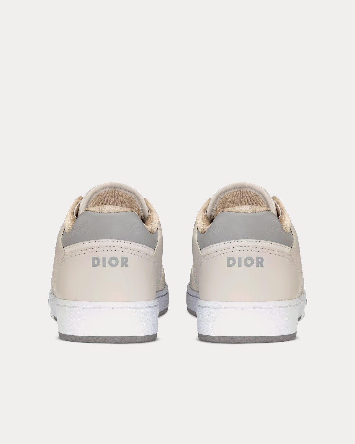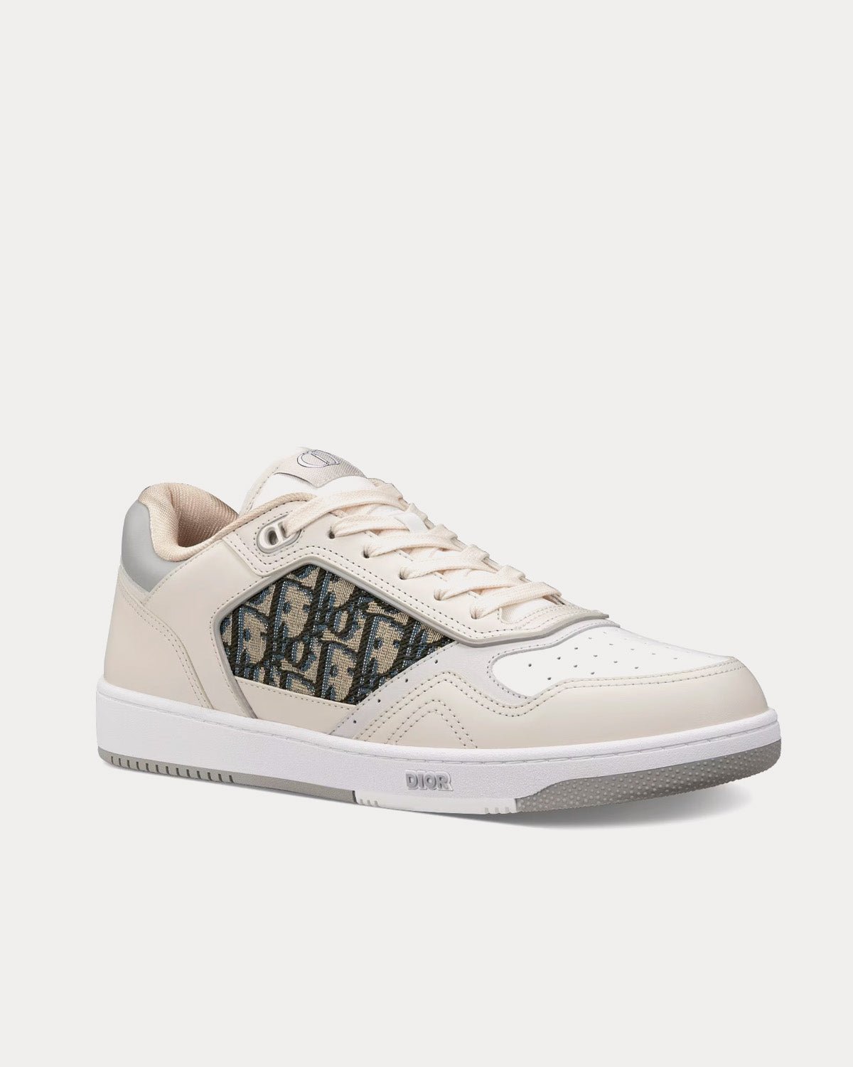 Baskets basses Dior B27 en cuir de veau lisse crème et blanc avec jacquard Dior Oblique beige et noir