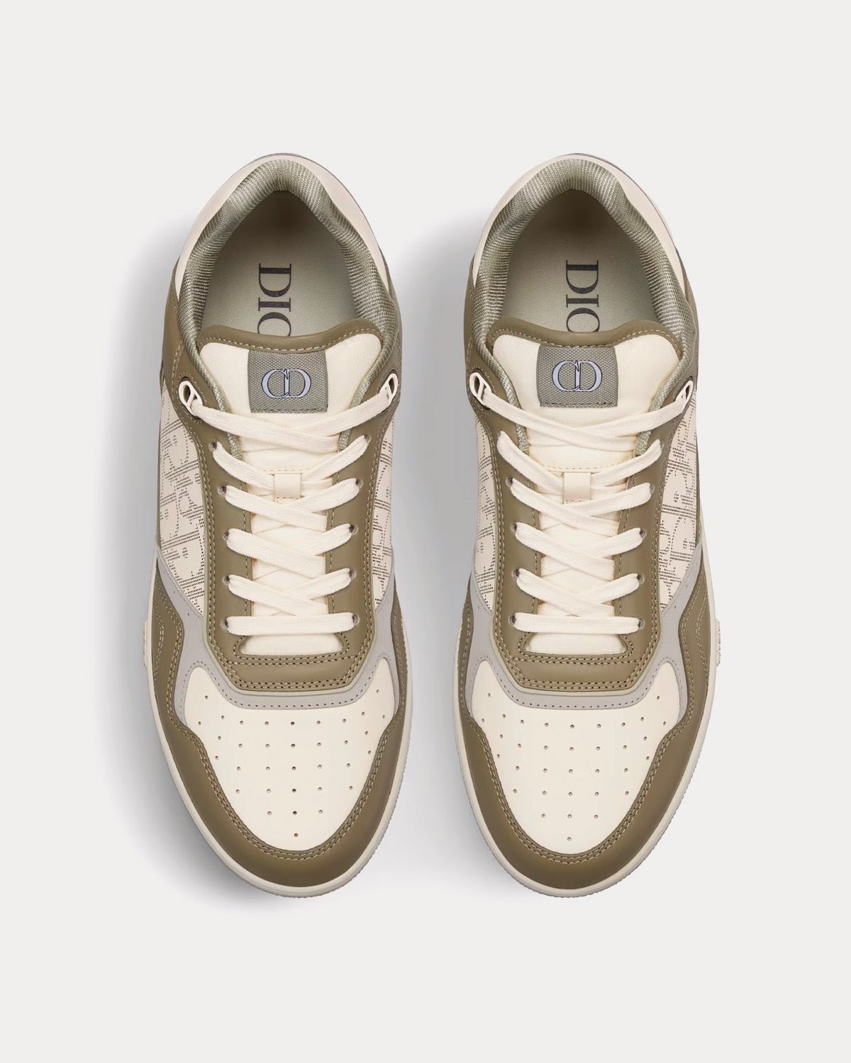 Baskets basses Dior B27 en cuir de veau lisse kaki et crème avec cuir Dior Oblique Galaxy crème
