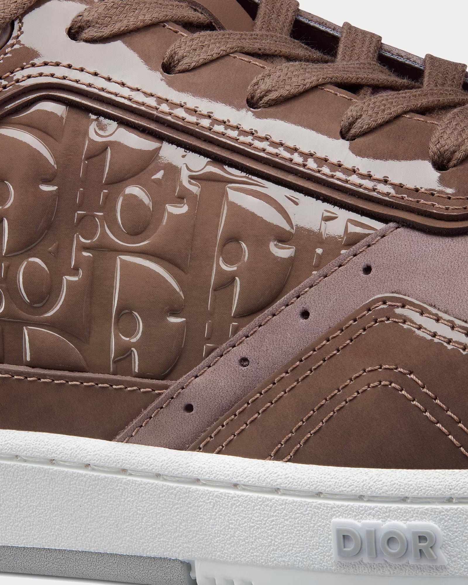 Les baskets basses pour hommes Dior B27 en cuir de veau verni prune et cuir Dior Oblique Gravity présentent un cuir de veau effet verni embossé du motif emblématique Dior Oblique, une languette signature CD Icon, la signature Dior sur la semelle et le talon, une cheville coussinée, une fermeture à lacets avec œillets CD Icon, une doublure en mesh technique et des semelles extérieures en caoutchouc noir.