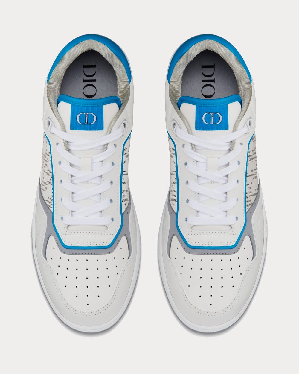 Baskets basses Dior B27 en cuir de veau lisse blanc et bleu clair avec cuir Dior Oblique Galaxy blanc