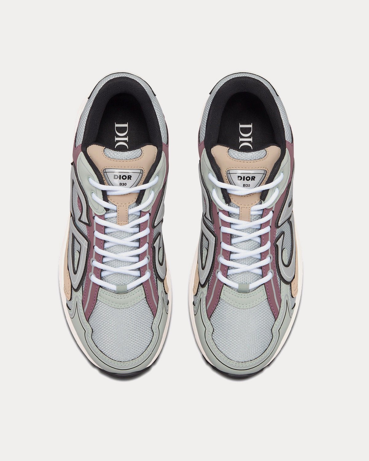 Baskets basses Dior B30 en mesh gris et tissu technique vert clair, beige et lavande