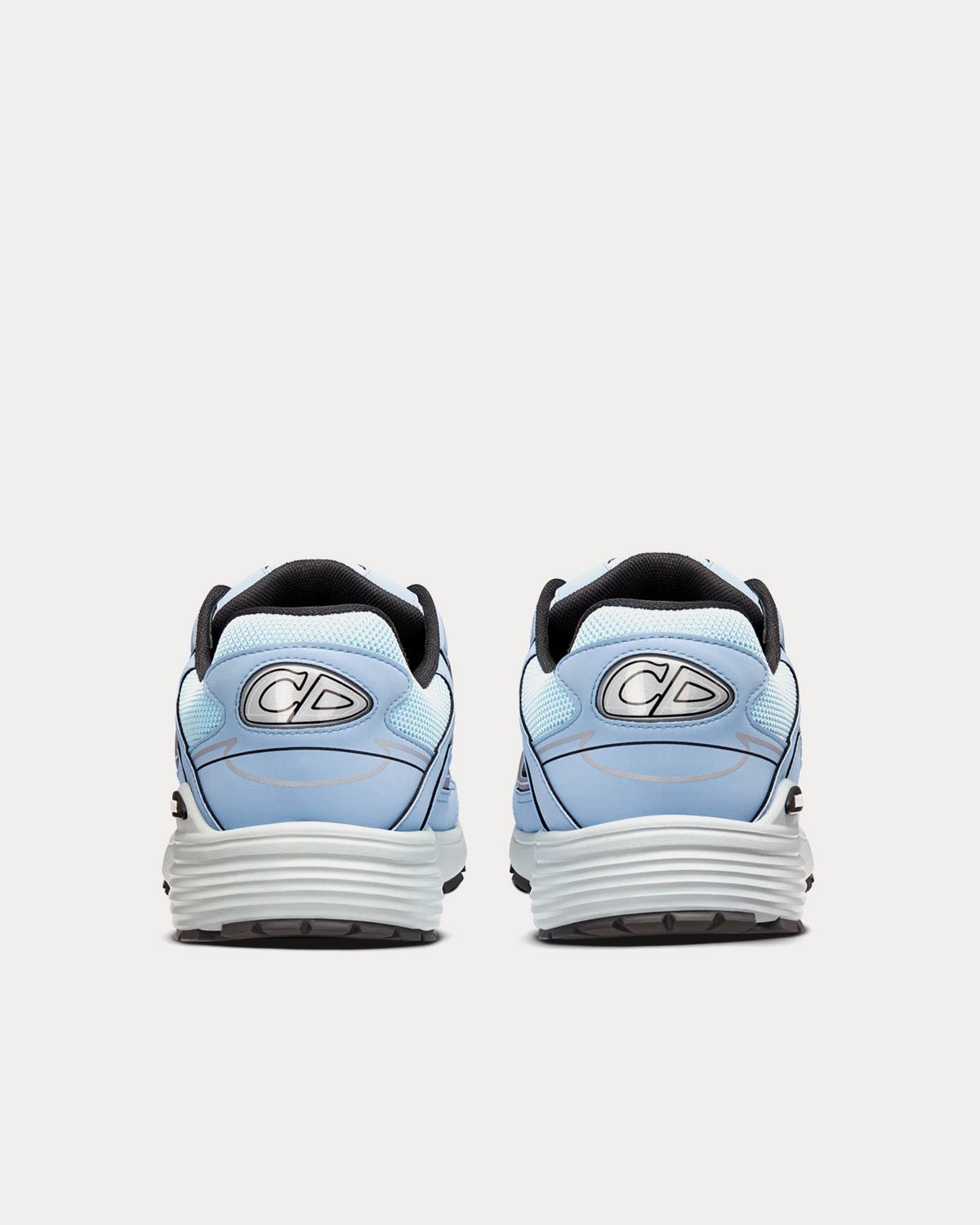 Baskets basses Dior B30 pour homme en mesh bleu et tissu technique, avec signatures CD30 réfléchissantes grises à l’arrière et sur les côtés, languette signature Dior B30, fermeture à lacets, doublure en cuir de veau et mesh technique, semelle extérieure en caoutchouc sculpté ultra-légère grise avec signature Dior et liseré noir, semelle bicolore avec signatures Dior, CD30 et B30, et construction soudée. Fabriquées en Italie.