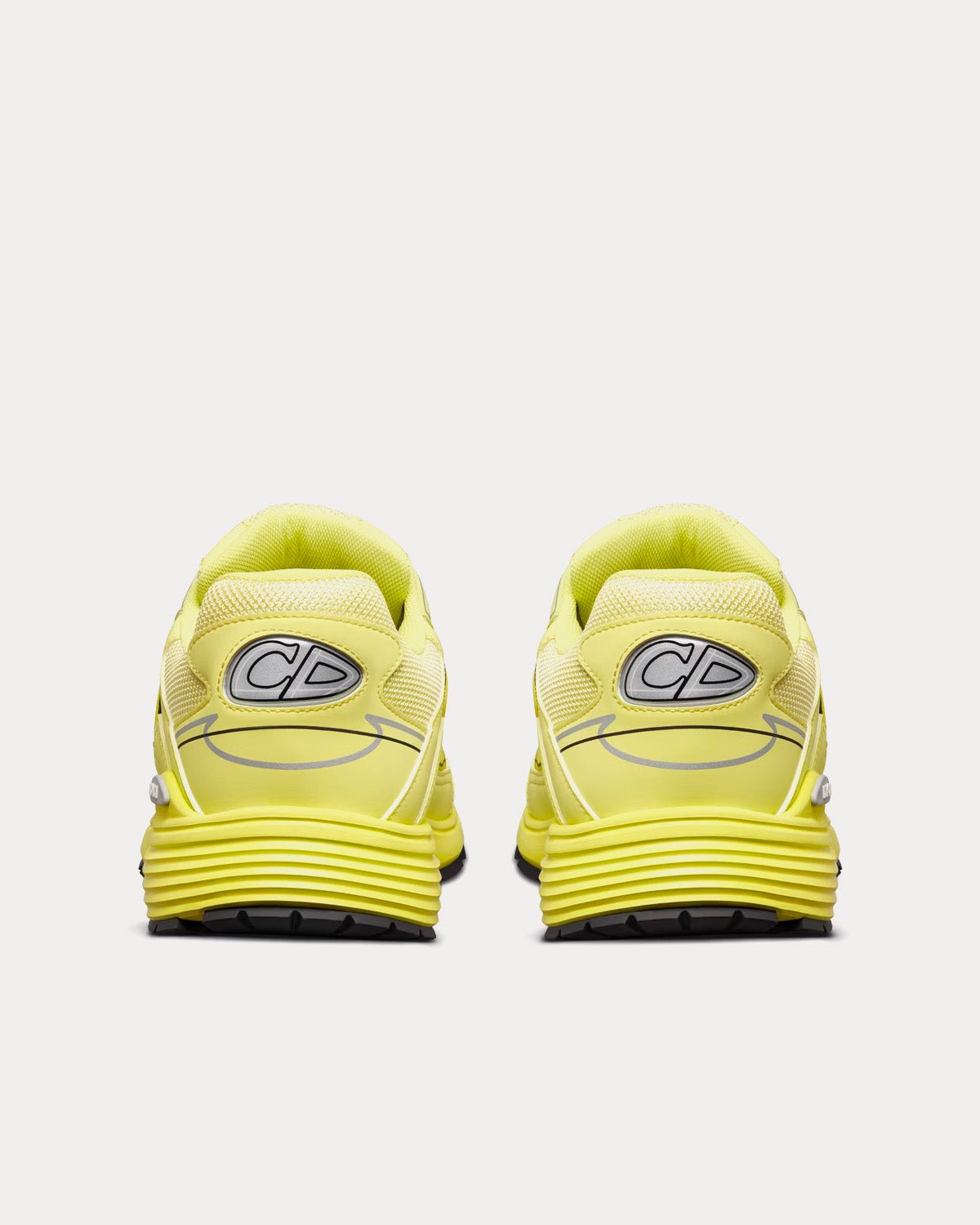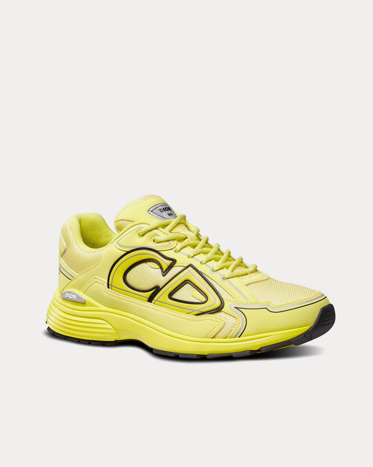 Les baskets basses Dior B30 pour homme en maille jaune et tissu technique présentent des signatures CD30 réfléchissantes à l’arrière et sur les côtés, une languette signature Dior B30, une doublure en cuir de veau et maille technique, une semelle extérieure en caoutchouc sculpté ultra-légère avec la signature Dior, une tige avec les signatures Dior, CD30 et B30, et une construction soudée. Fabriquées en Italie.