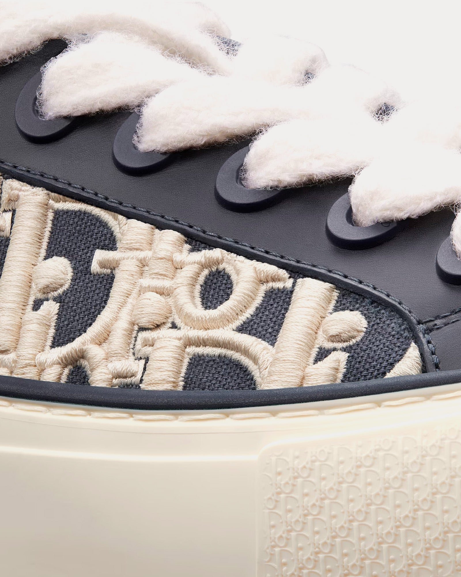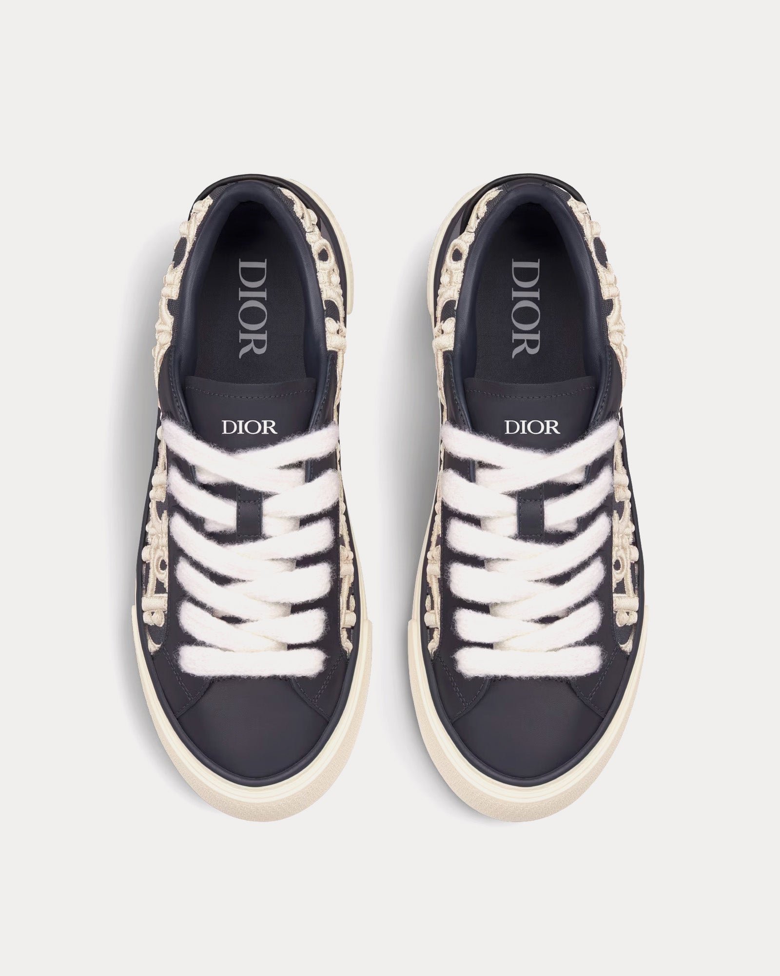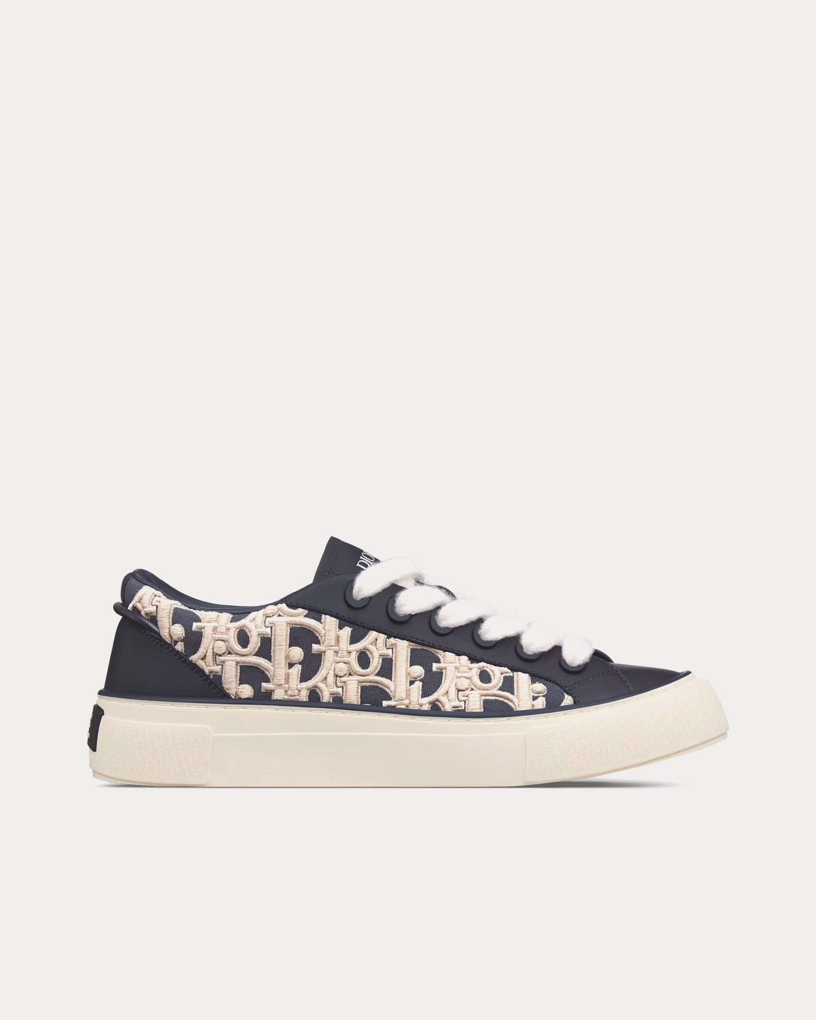 Baskets basses Dior B33 en cuir de veau lisse bleu marine et broderies Dior Oblique en relief crèmeBaskets basses Dior B33 en cuir de veau lisse bleu marine et broderies Dior Oblique en relief crème