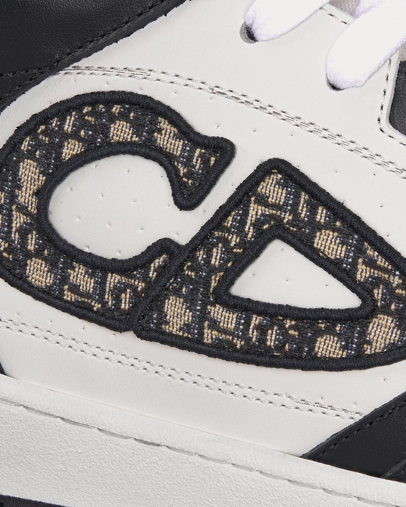 Baskets mi-hautes Dior B57 en cuir de veau lisse noir et blanc avec jacquard Dior Oblique beige et noirBaskets mi-hautes Dior B57 en cuir de veau lisse noir et blanc avec jacquard Dior Oblique beige et noir