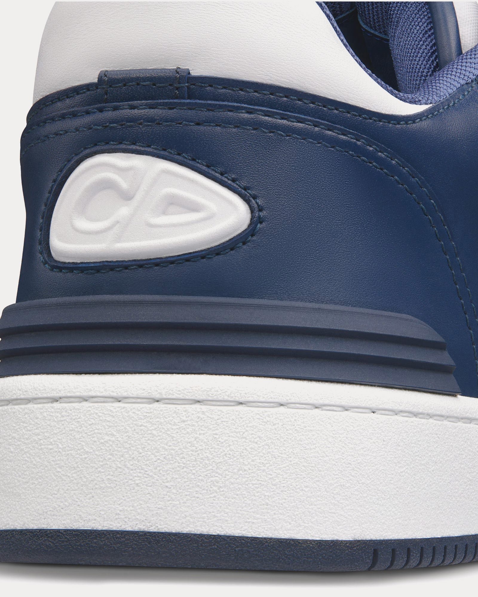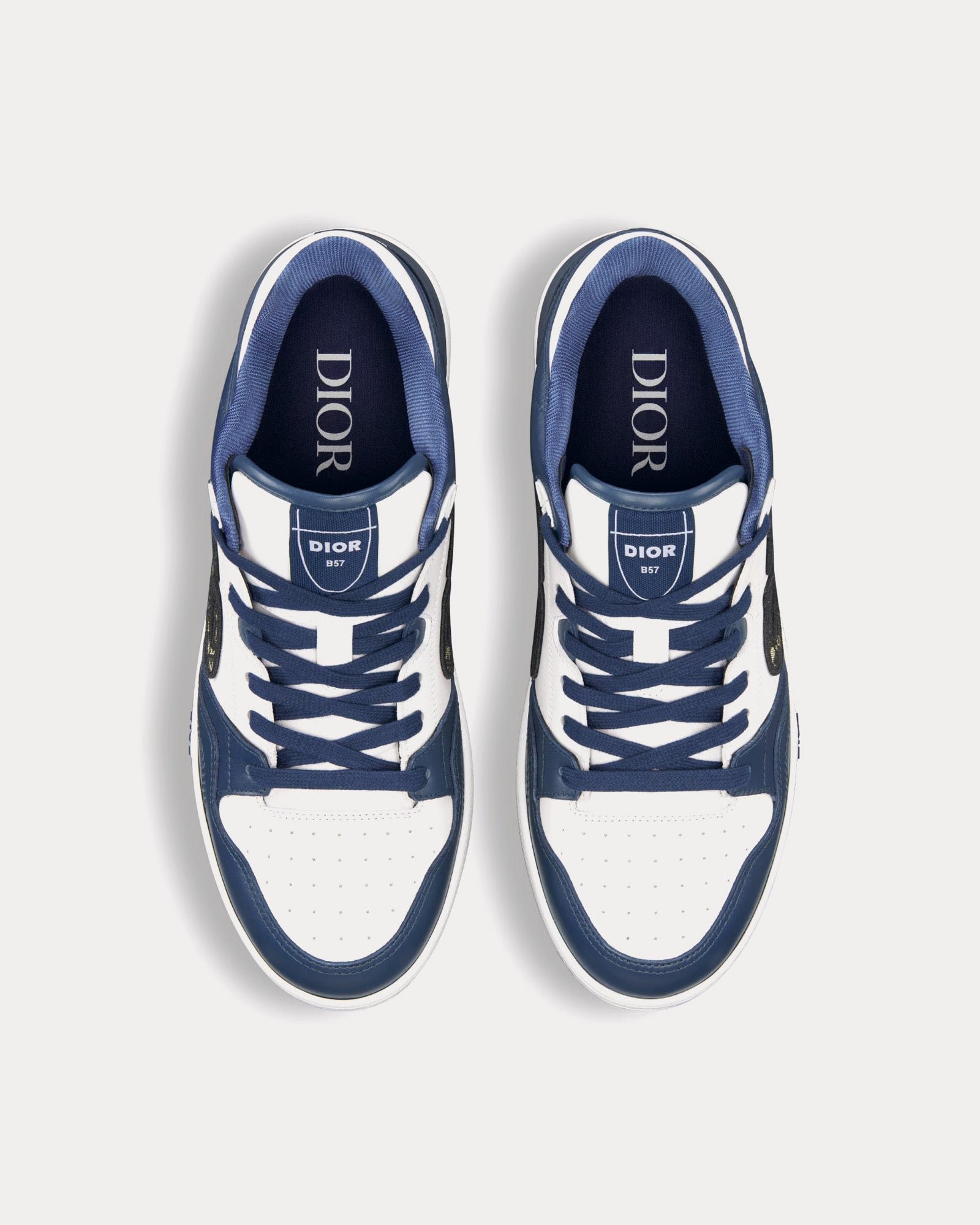 Baskets basses Dior B57 en cuir de veau lisse bleu marine et blanc avec jacquard Dior Oblique beige et noir
