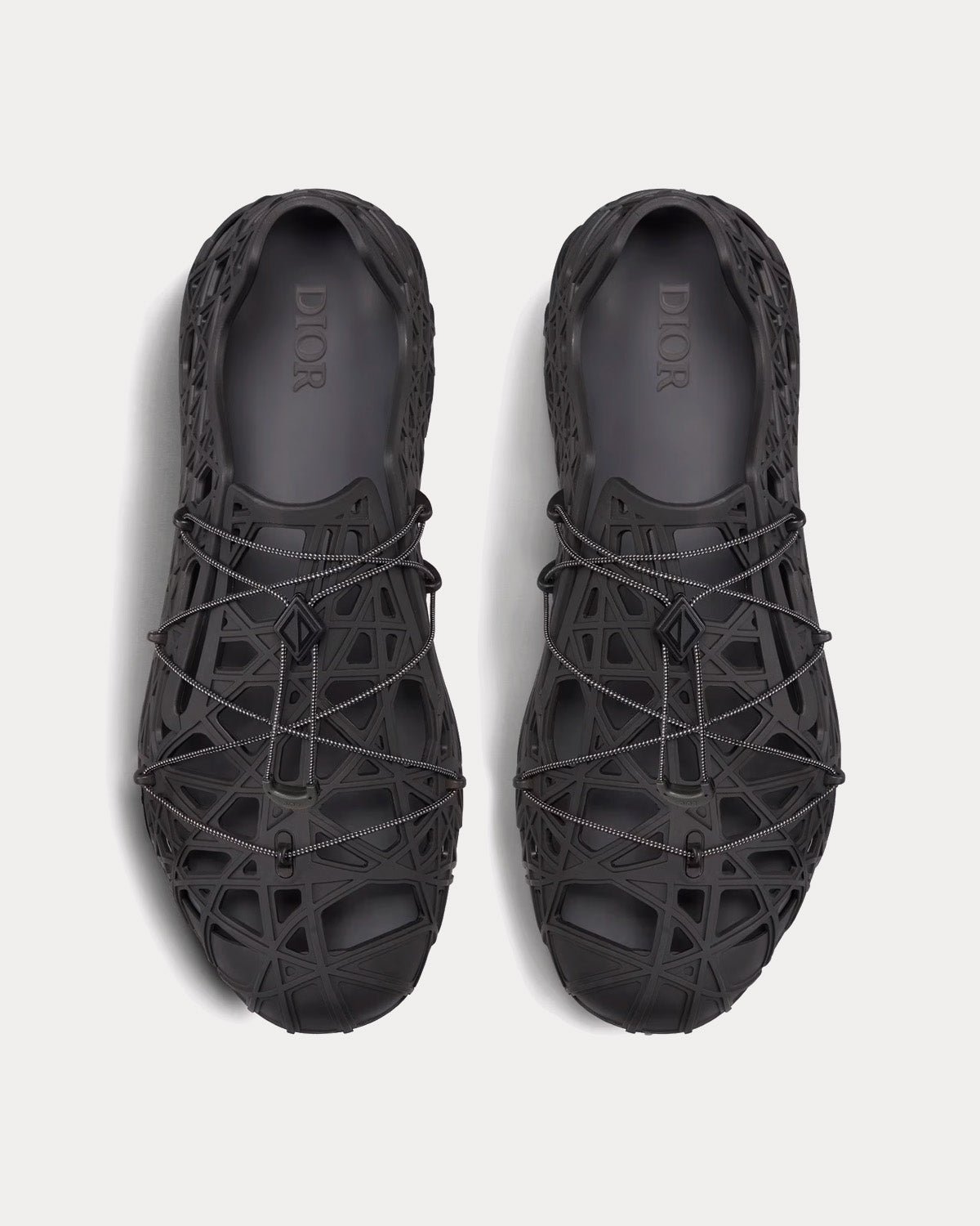 Les sandales Dior Warp pour hommes sont dotées d’un cordon de serrage avec fermeture à cordon CD Diamond, d’une semelle intérieure en caoutchouc noir, d’une semelle extérieure en caoutchouc sculpté Cannage et d’une construction soudée. Fabriqué en Italie.