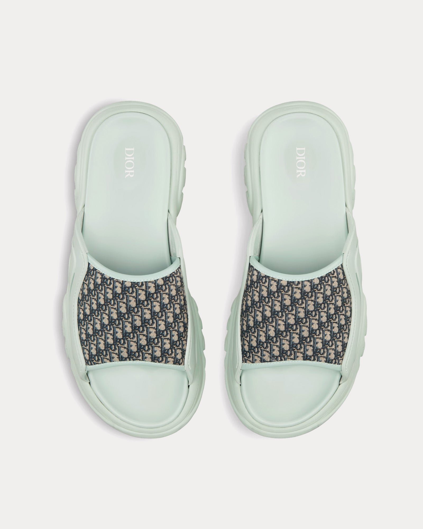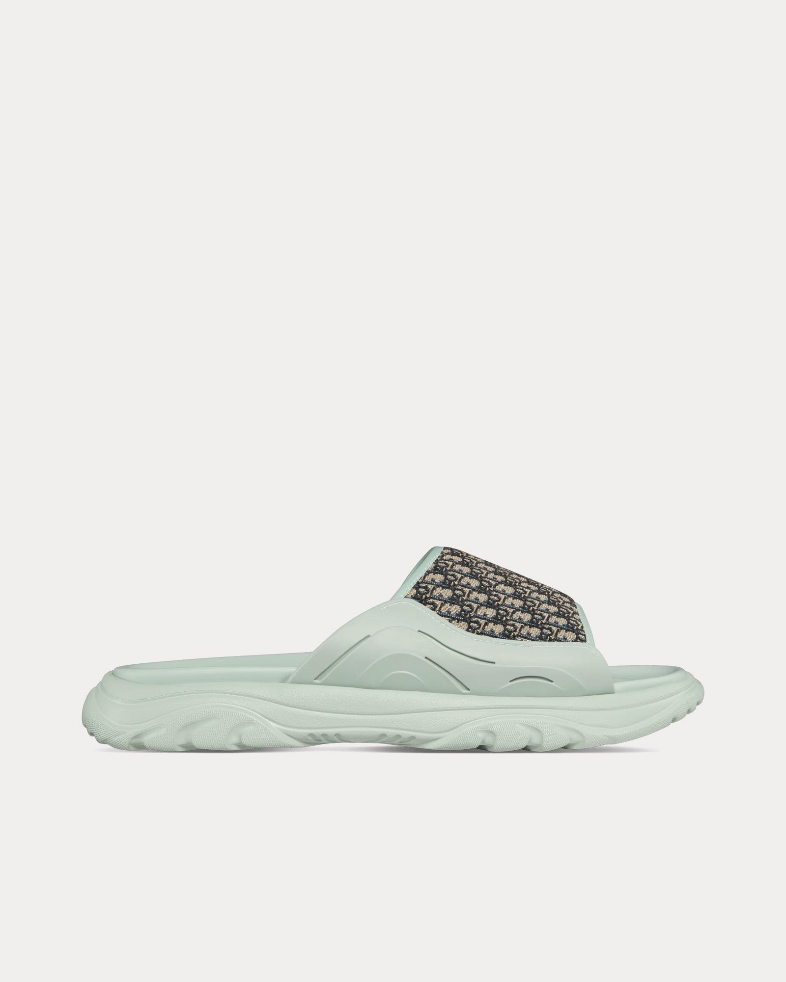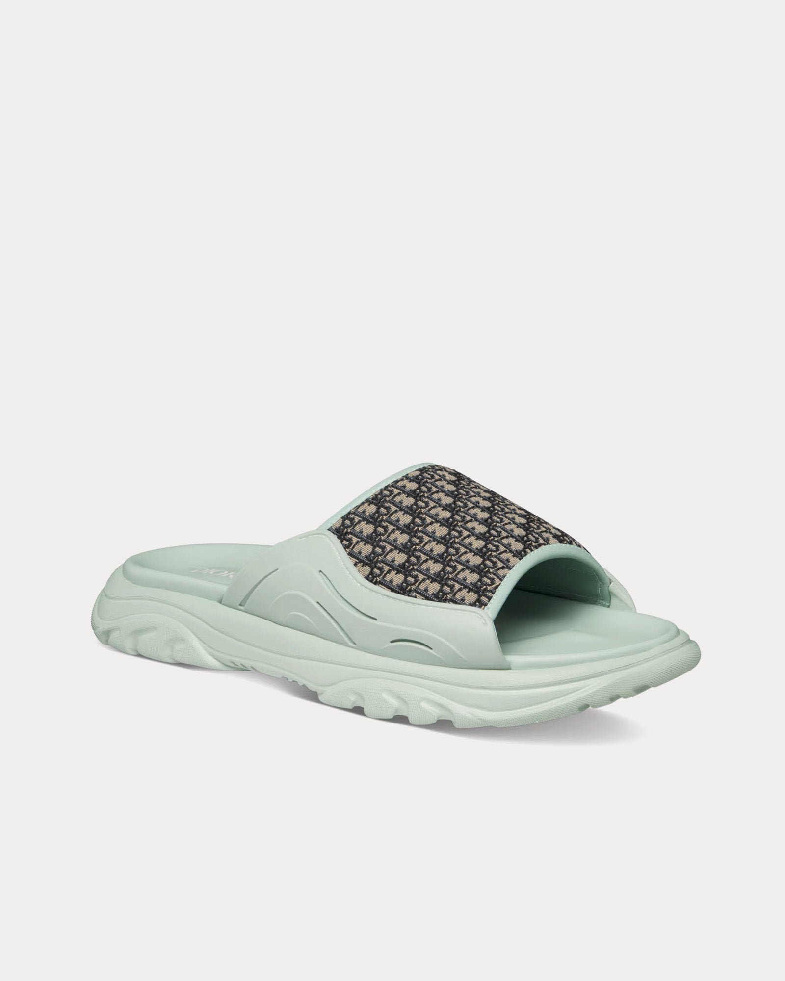 Sandales Dior H-Town en caoutchouc vert clair avec jacquard Dior Oblique beige et noir