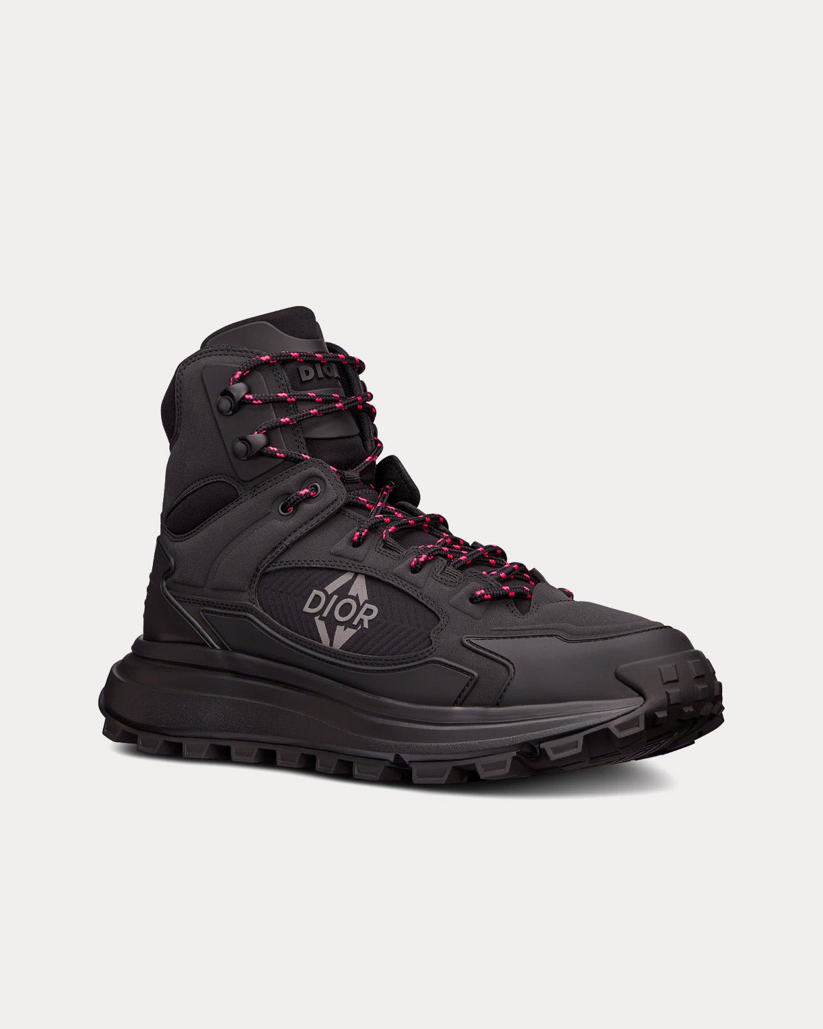 Nouveauté de la saison, la bottine Dior Snow met en valeur la technicité et les codes couture de la collection Dior Ski Capsule. Confectionnée en tissu technique noir garantissant une imperméabilité jusqu’à quatre heures, elle est rehaussée de détails emblématiques, dont la signature Dior CD Diamond réfléchissante sur le côté. La cheville et la languette matelassées garantissent un confort optimal, tandis que le laçage bicolore accentue l’esthétique montagnarde du modèle. Dotée d’une semelle épaisse texturée offrant une excellente adhérence sur la neige, cette bottine s’associera facilement aux autres créations de la collection Dior Ski Capsule.