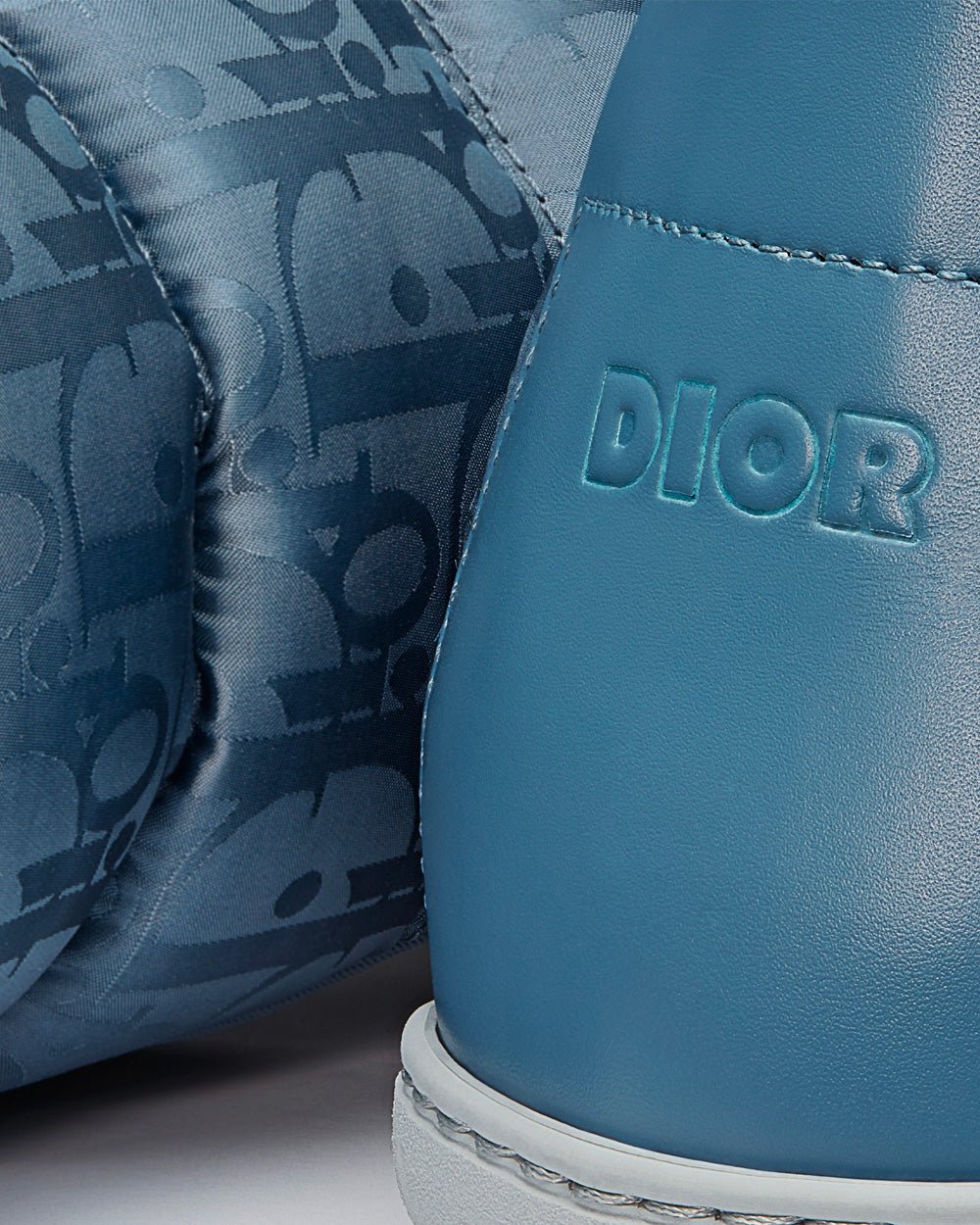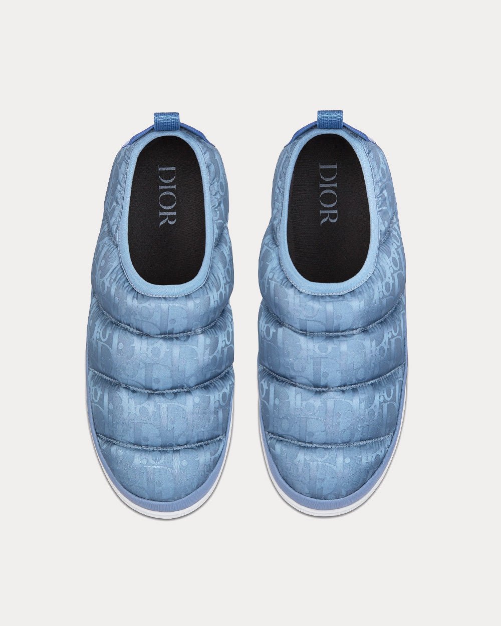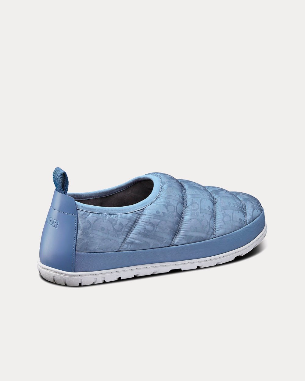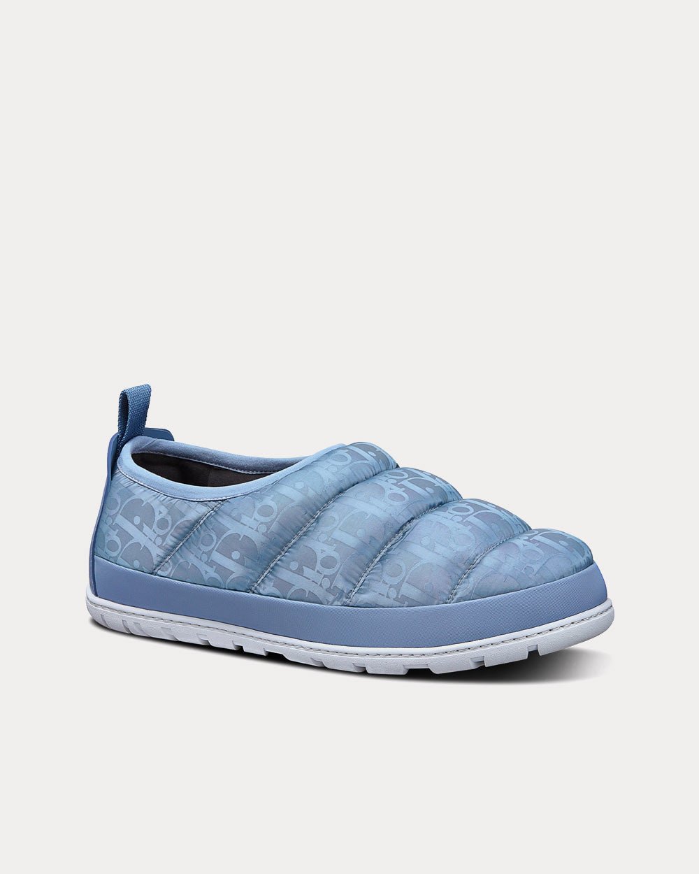 La pantoufle de neige est un modèle hybride et pratique. Confectionnée en tissu technique matelassé orné du motif Dior Oblique Mirage bleu, elle s’enfile facilement grâce à sa bande extensible. Légère et confortable, elle est dotée d’un contrefort en cuir de veau lisse signé « DIOR » et d’une semelle en gomme grise. Elle se porte aussi bien à l’intérieur qu’à l’extérieur.