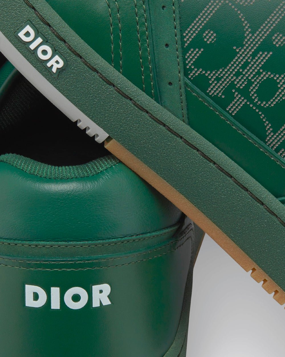 Baskets basses Dior World Tour B27 vertes en cuir Dior Oblique Galaxy, veau lisse et daim