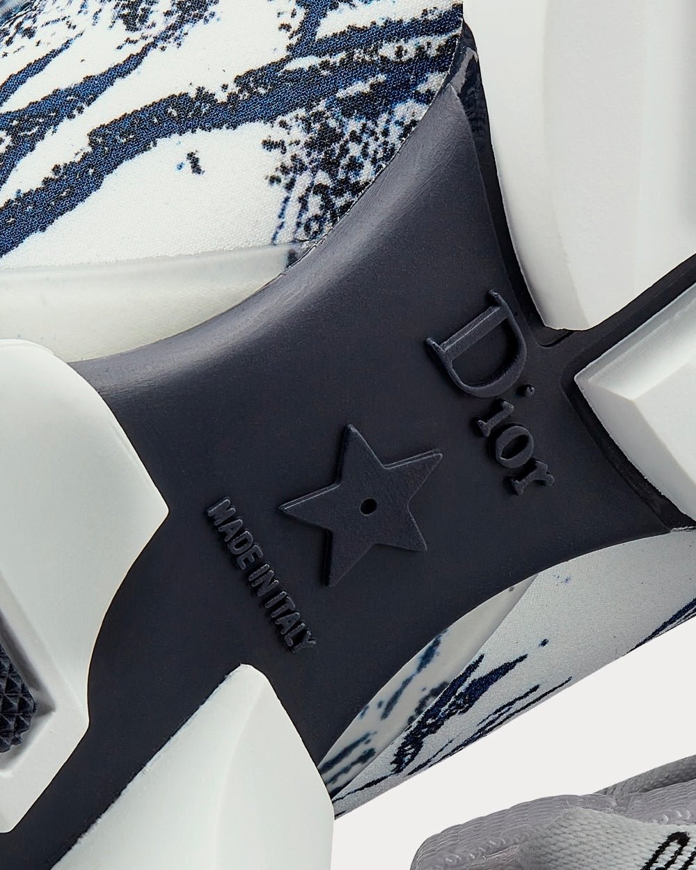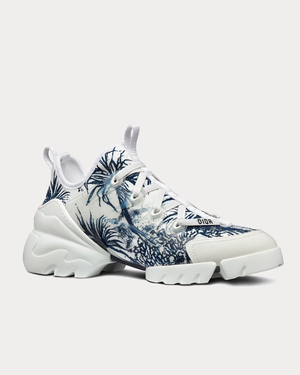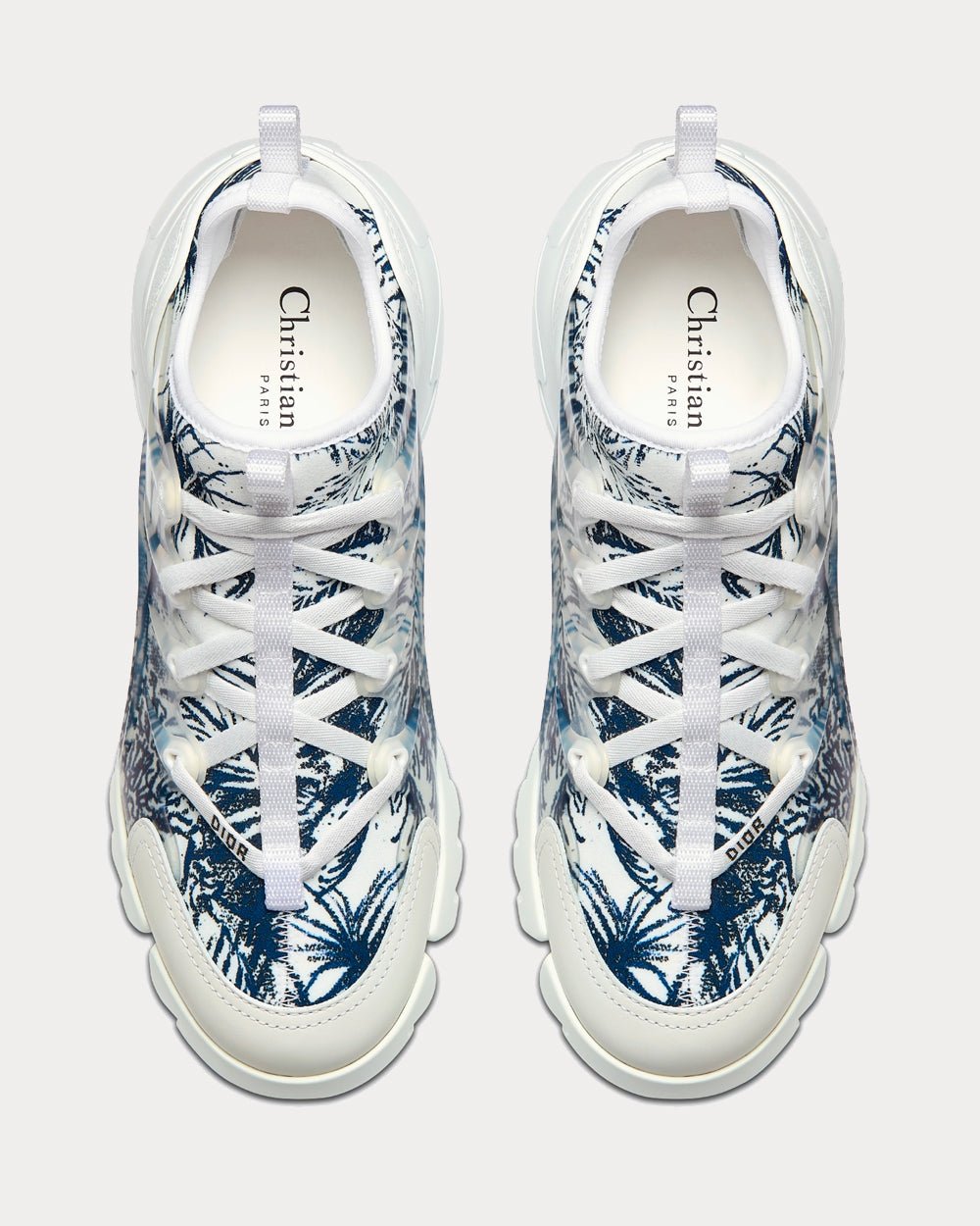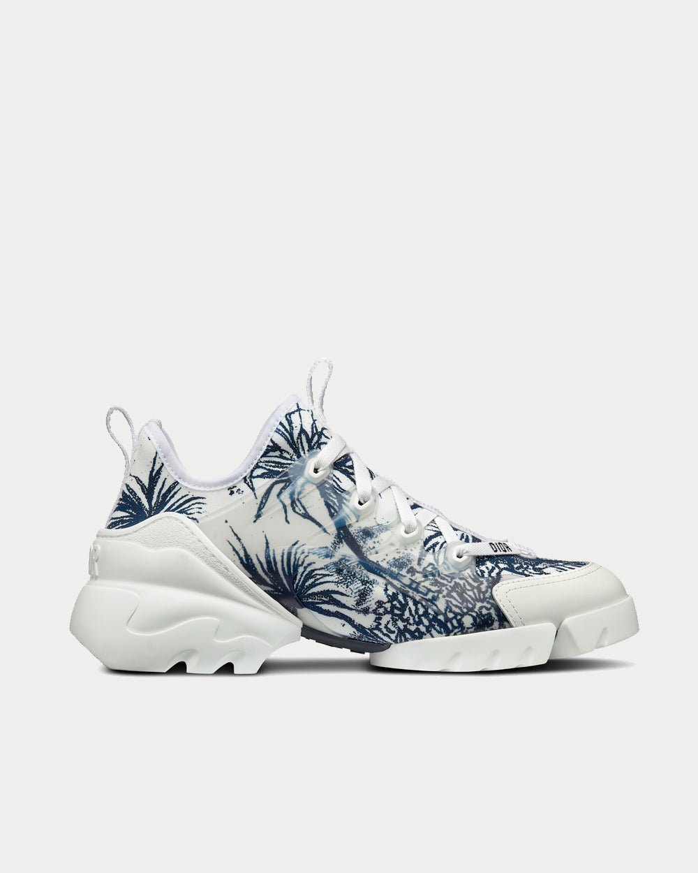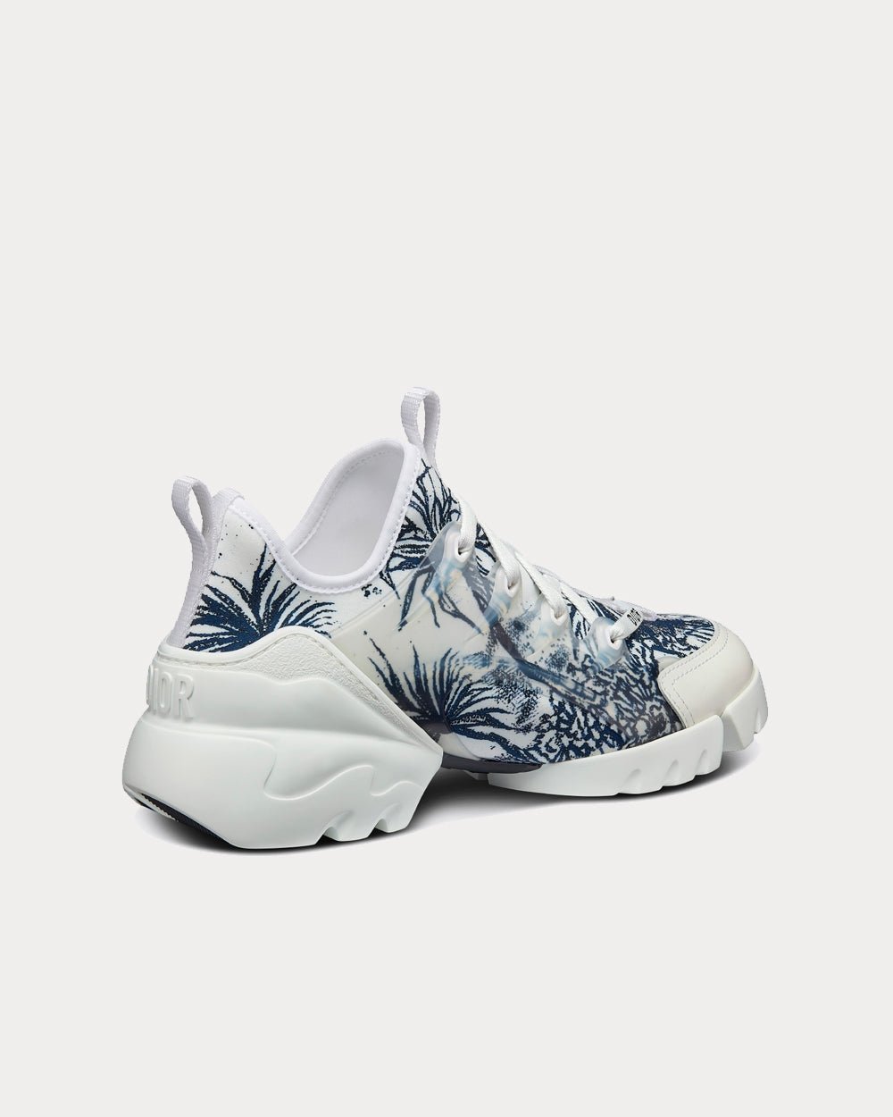 Baskets basses Dior D-Connect en tissu technique blanc et bleu marine avec imprimé palmiers en toile de Jouy