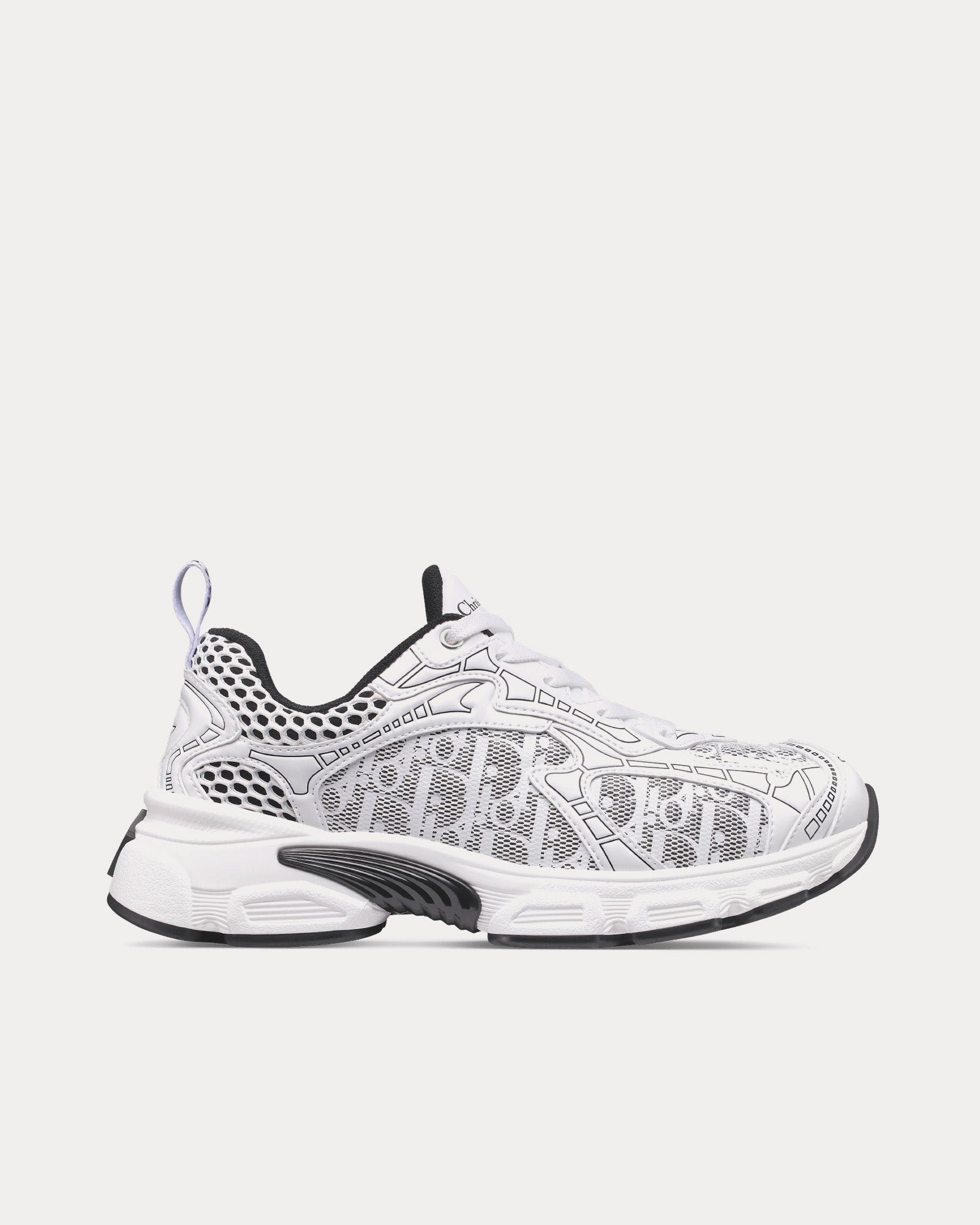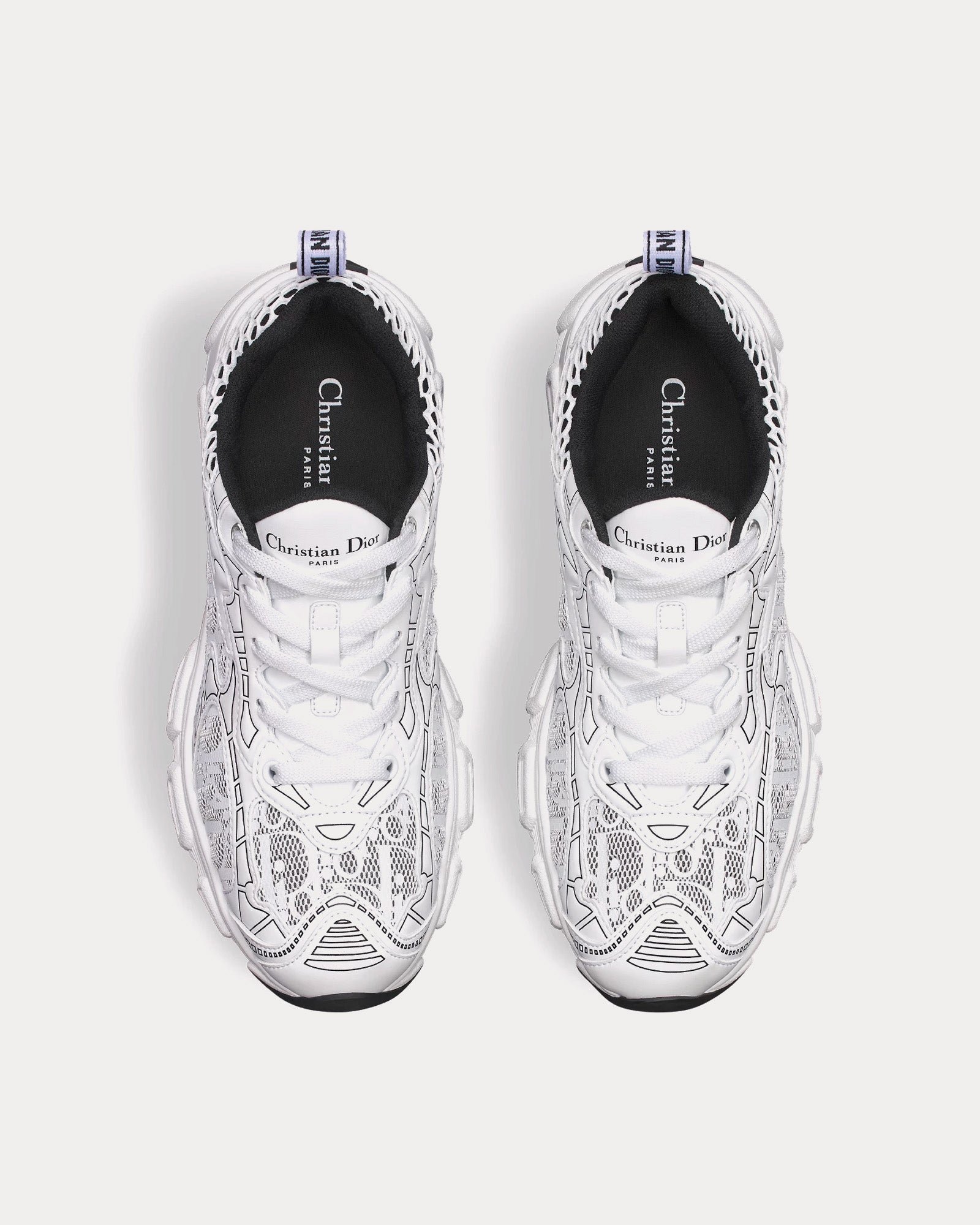 Baskets basses Dior Vibe en mesh blanc imprimé motif Dior Oblique et empiècements effet cuir blanc et noir