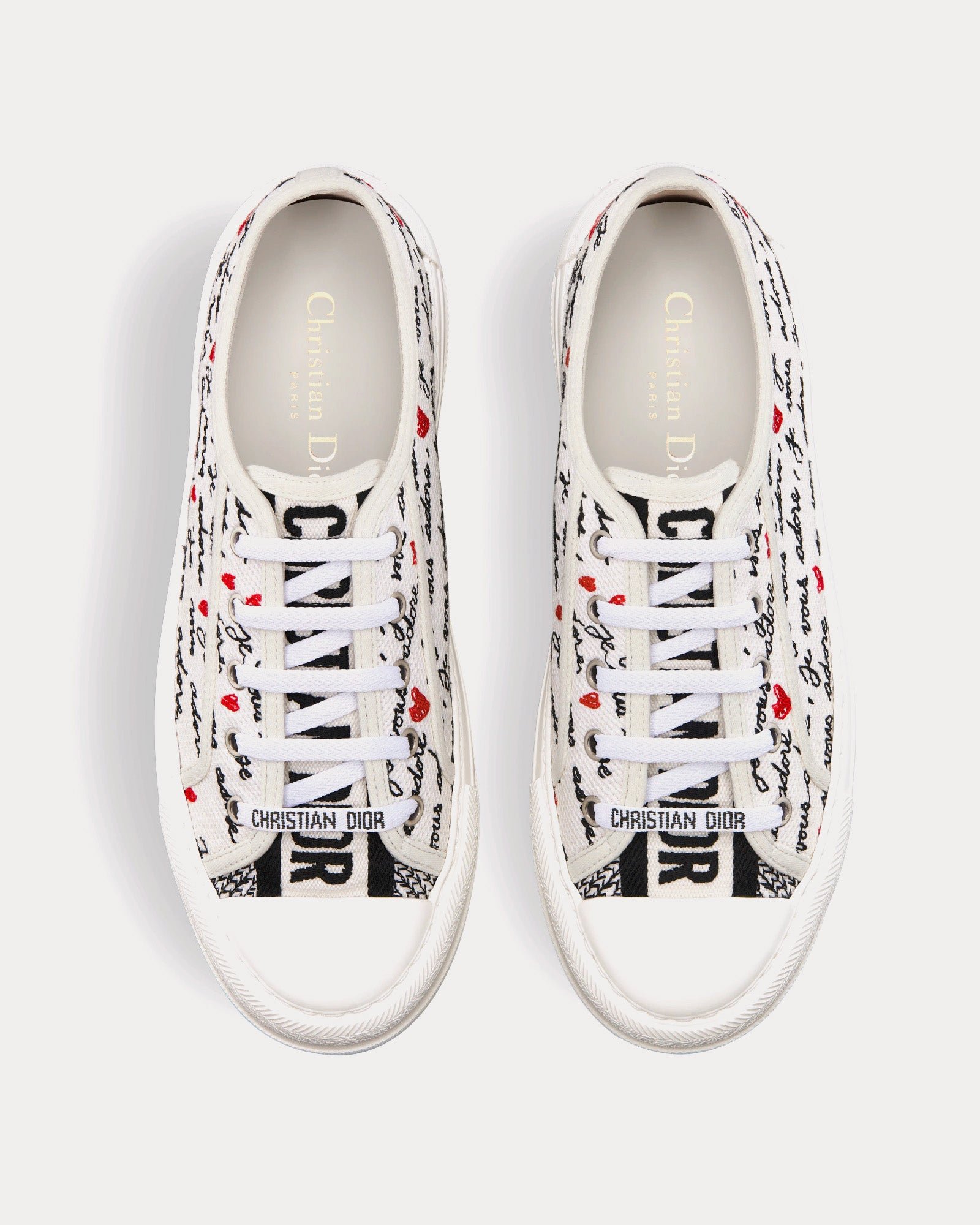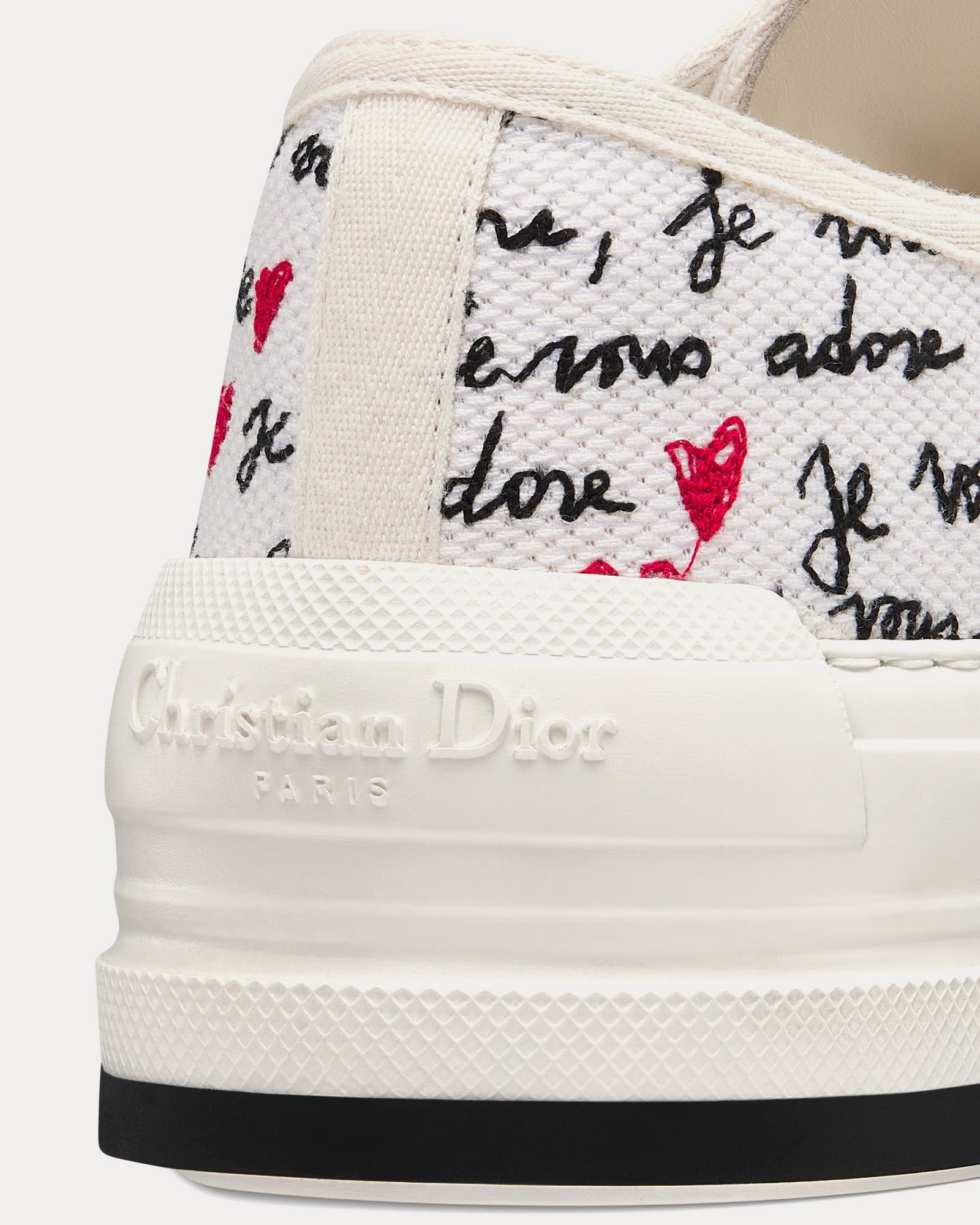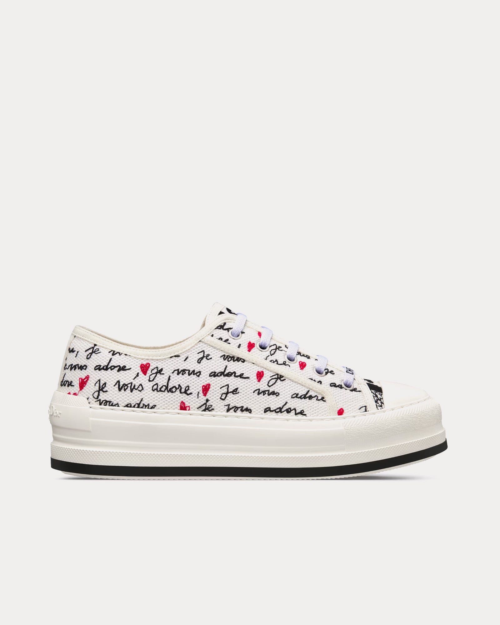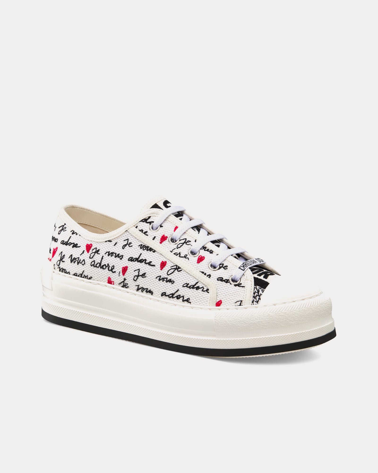 Baskets basses Dior Dioramour Walk’n’Dior Platform en coton blanc avec motif Je Vous Adore brodé noir et rouge