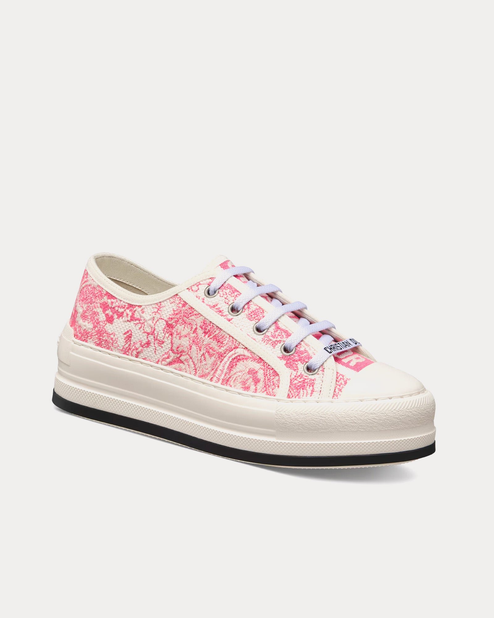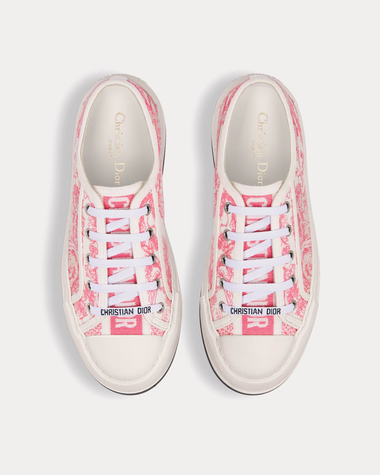 Baskets basses Dior Dioriviera Walk’n’Dior Platform en coton brodé de toile de Jouy Sauvage rose bonbon