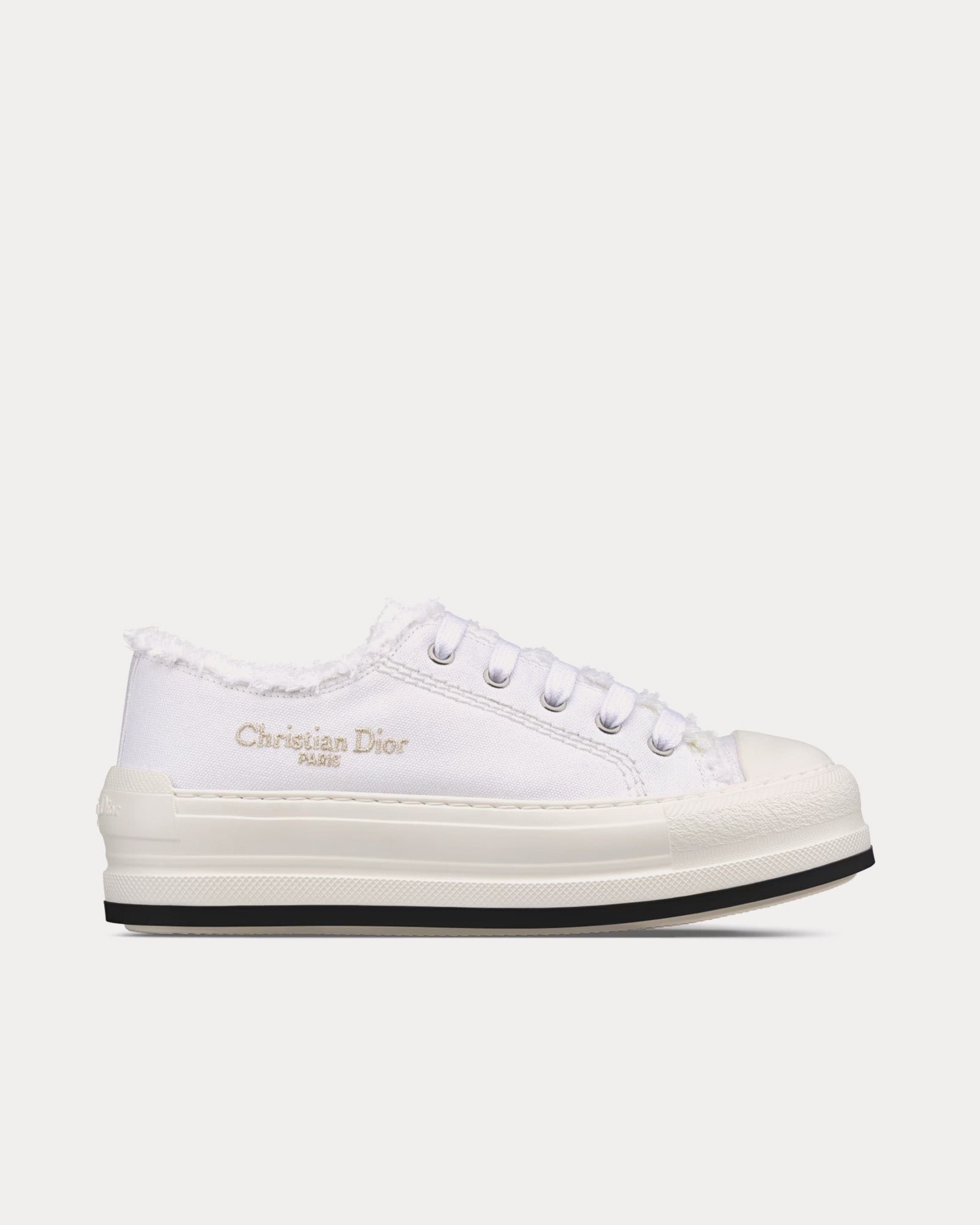 Baskets basses Dior Dioriviera Walk’n’Dior Platform en toile de coton blanche à franges et broderies