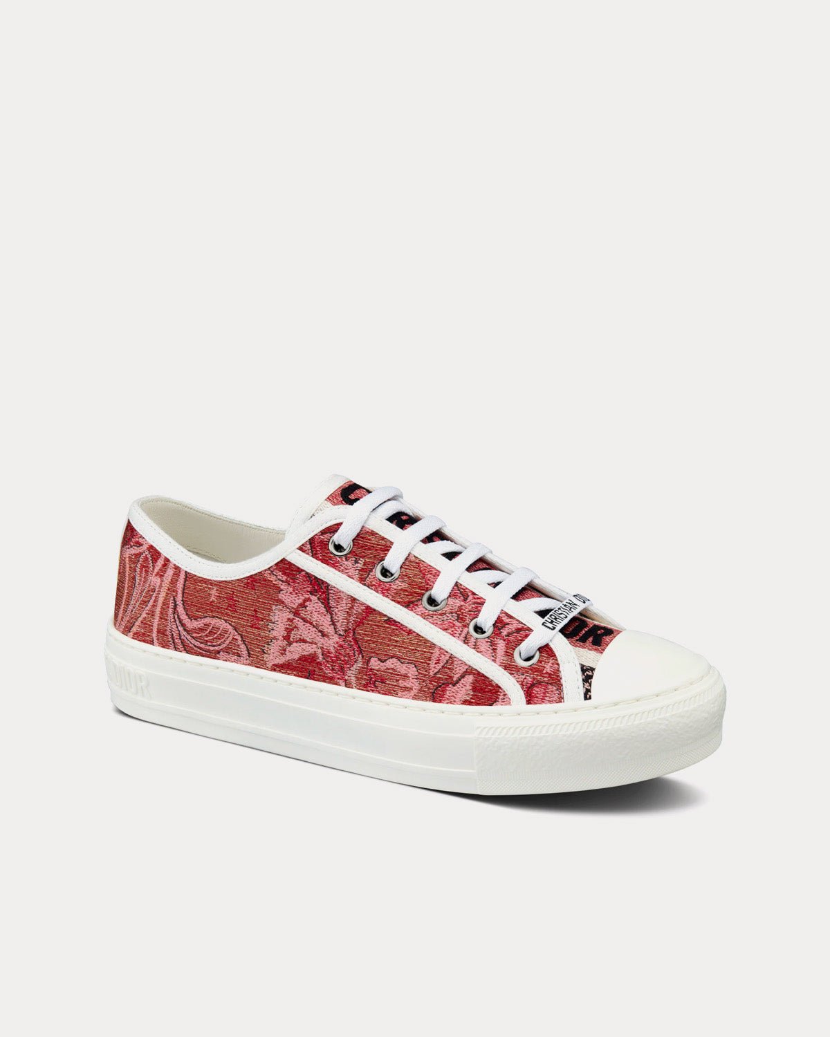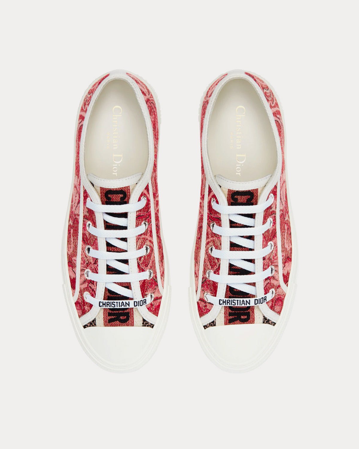 Baskets basses Dior Walk’n’Dior en coton brodé rouge cerise et fil métallisé doré
