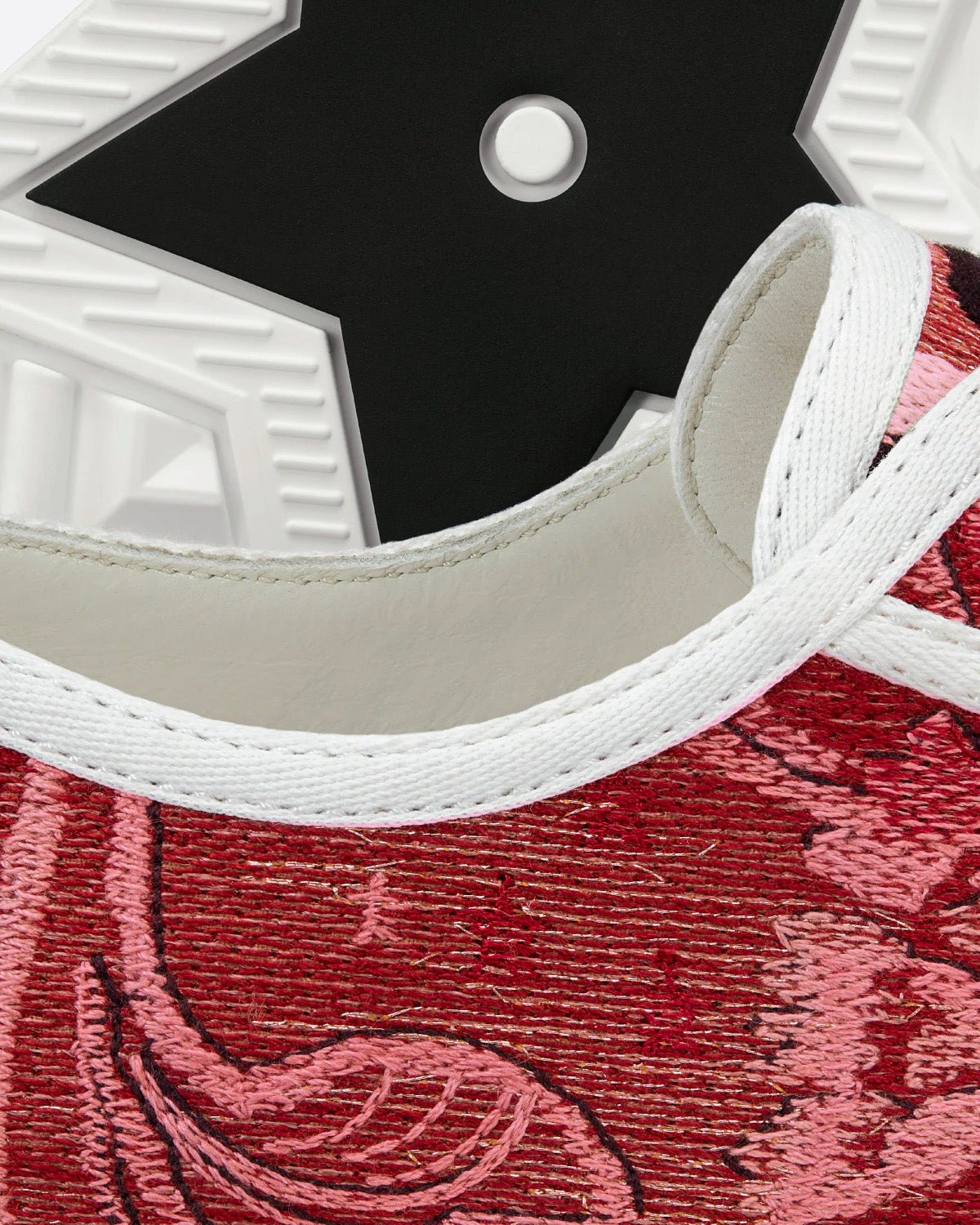 La sneaker Walk’n’Dior met en valeur le motif rouge cerise Dior Brocart, revisitant les codes intemporels de la Maison avec élégance et modernité. Confectionnée en coton brodé de fils métalliques dorés, elle présente un design décontracté, complété par des signatures sur la languette, la semelle en caoutchouc et les lacets pour un look intemporel. Confortable, cette sneaker apportera une touche de modernité à toutes vos tenues et s’associera parfaitement aux autres créations Dior Brocart de la collection.