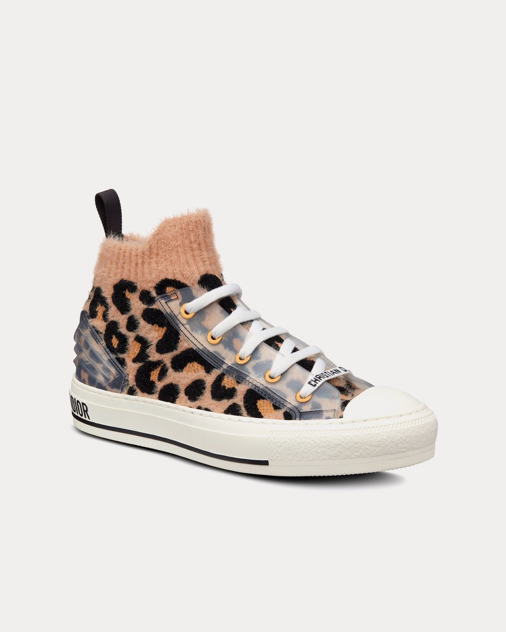 Baskets montantes Dior Walk’n’Dior en maille effet fourrure imprimée de motifs Mizza beiges multicolores