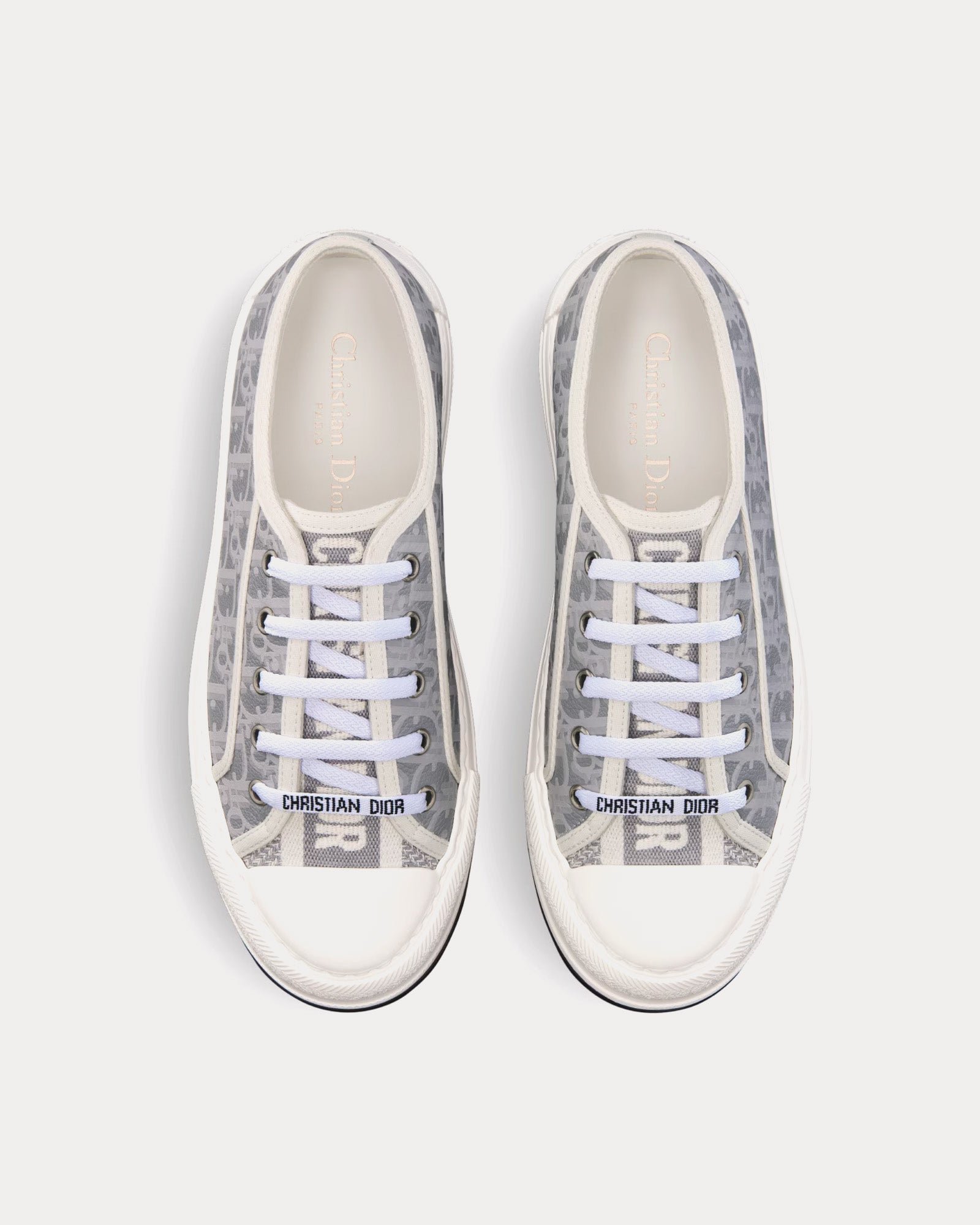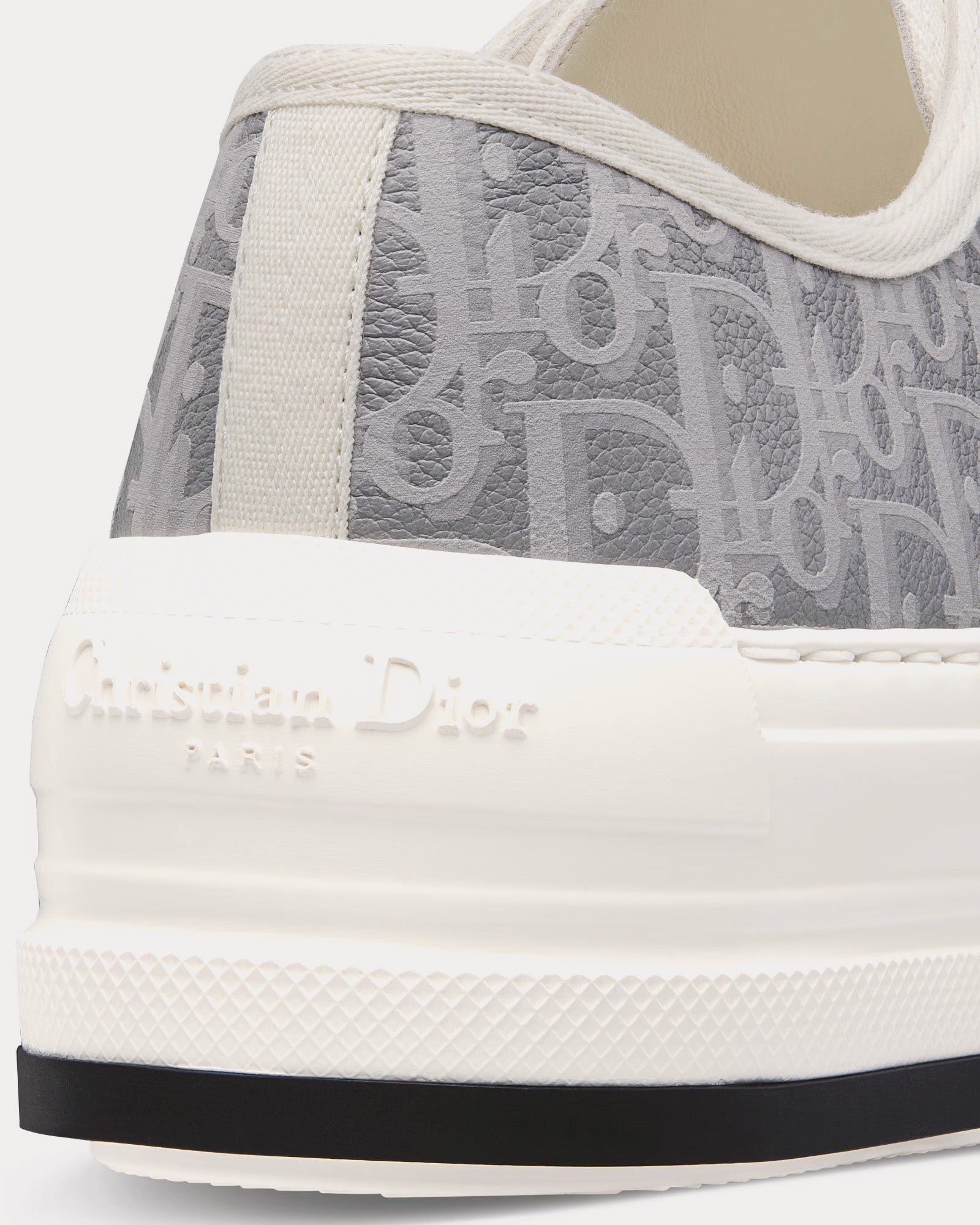 Baskets basses Dior Walk’n’Dior Platform en cuir de veau gris texturé avec motif Dior Oblique et coton brodé