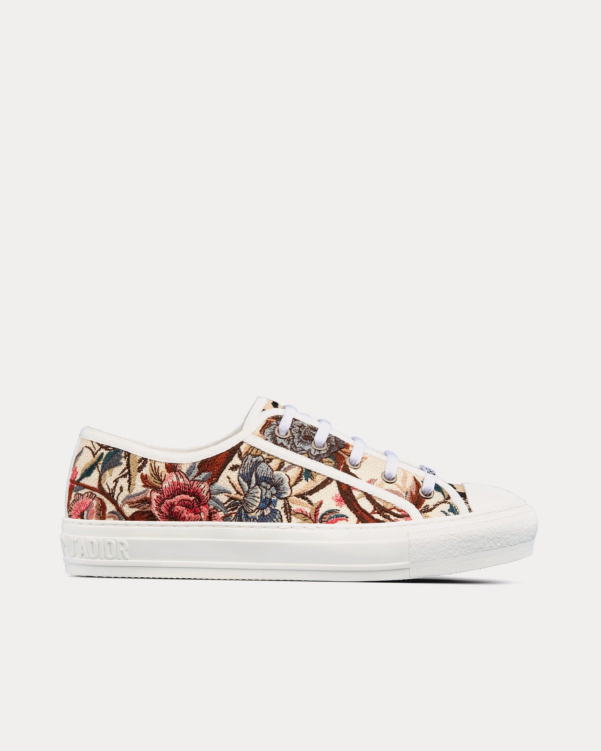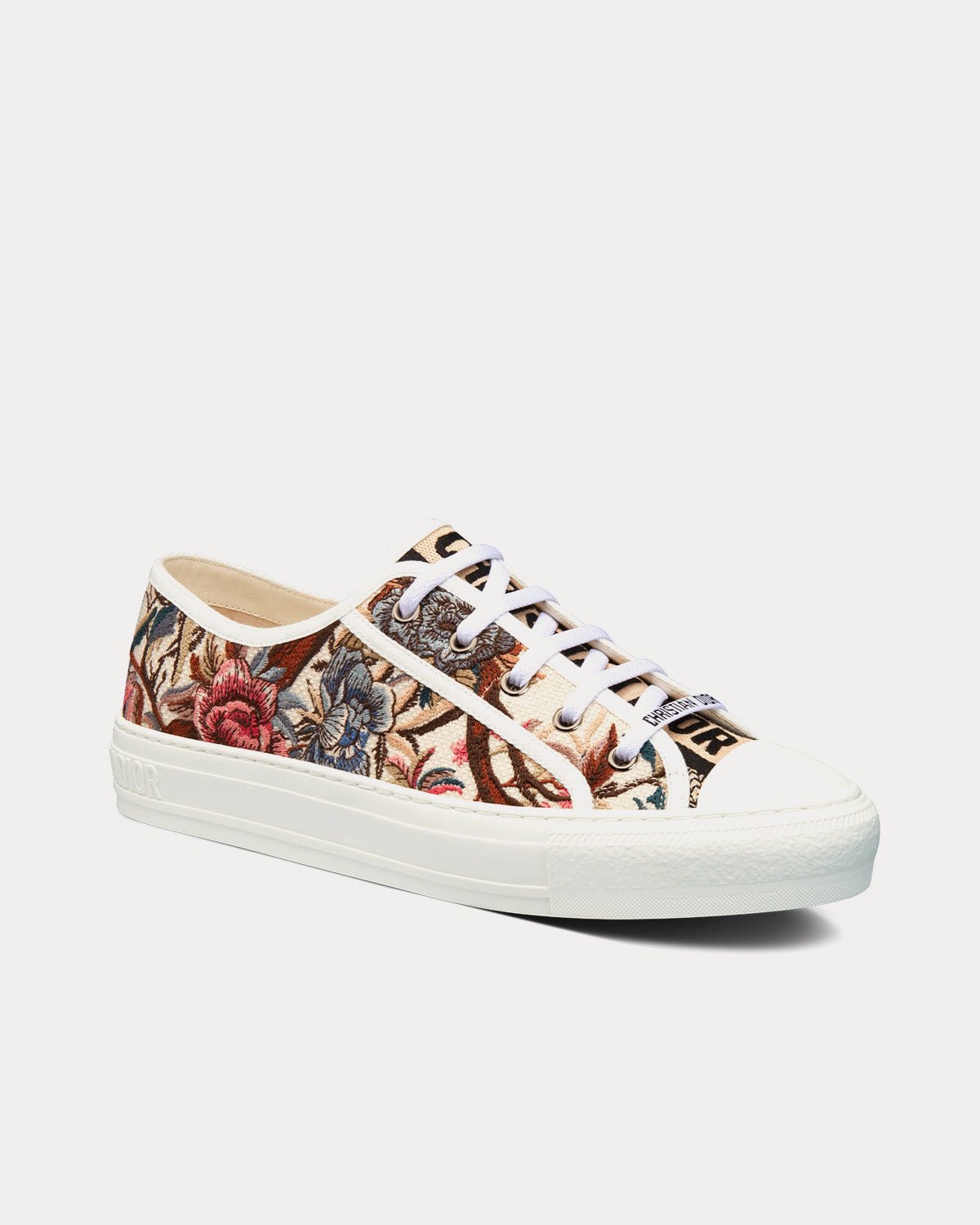 Baskets basses blanches et multicolores en coton brodé Dior Walk’n’Dior Jardin d’Hiver