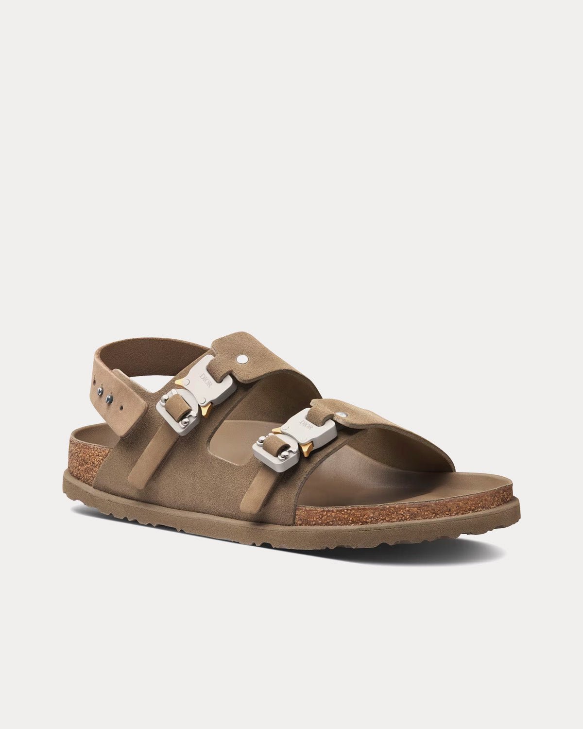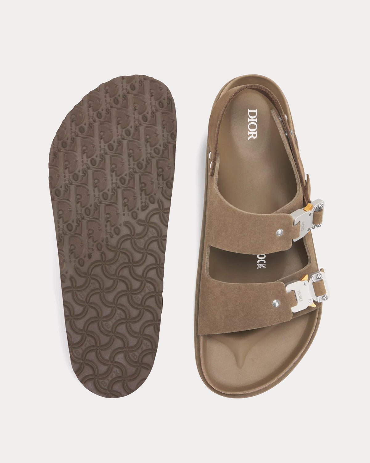 Sandales Dior x Birkenstock Milano en cuir de veau nubuck kaki