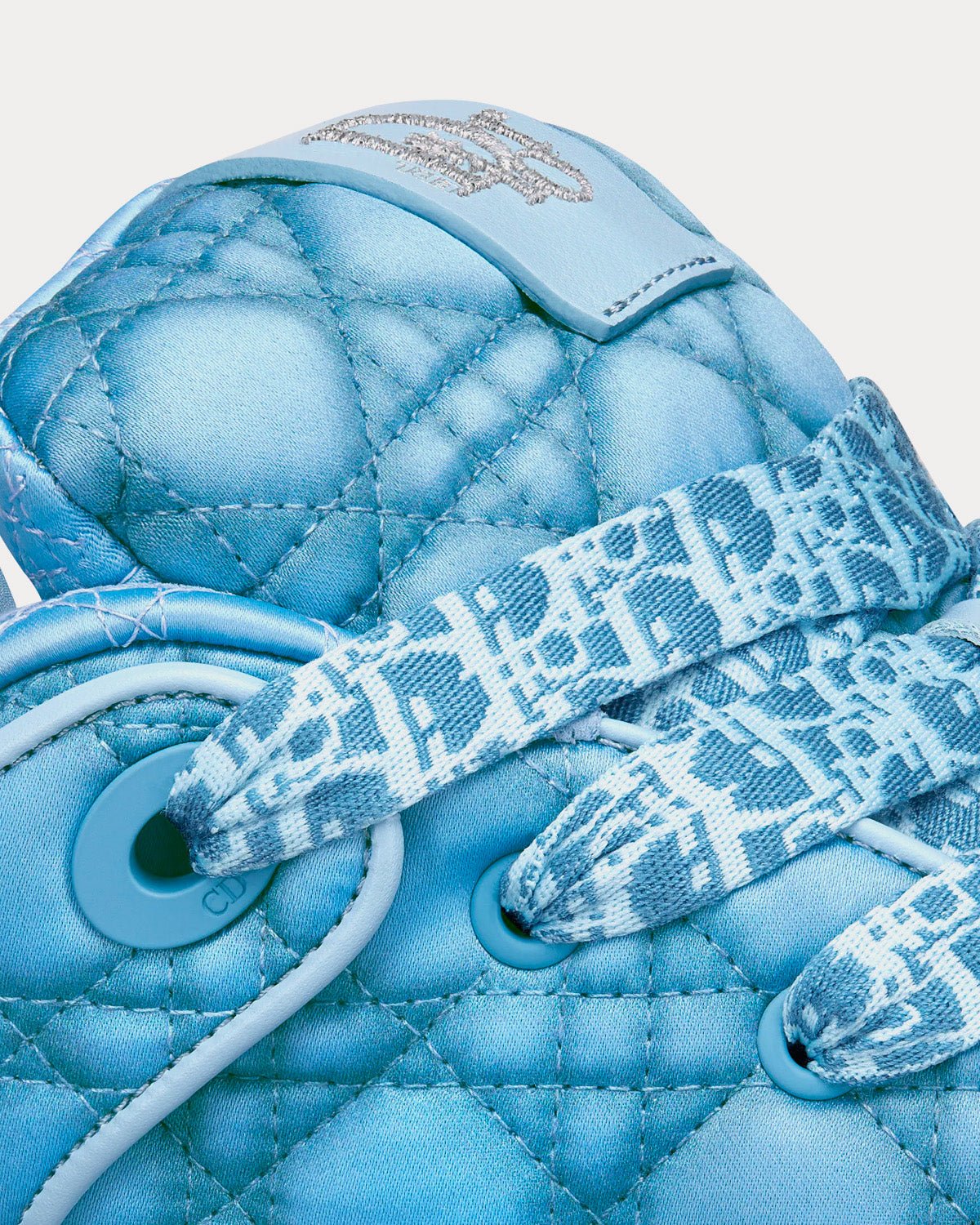 Pièce maîtresse de la collaboration exclusive DIOR BY ERL, la nouvelle B9S s’inspire des codes skate et de l’esprit couture de la Maison. Confectionnée en satin Kumo Cannage bleu, elle offre une version matelassée du motif emblématique. La languette matelassée et la semelle de propreté en tissu technique offrent un confort optimal. Un motif floral DIOR BY ERL est brodé de fils métalliques à l’arrière, tandis que l’avant est orné d’un empiècement en caoutchouc ton sur ton reprenant le motif Cannage. Complétée par une semelle en caoutchouc gravée d’un motif Dior Oblique dégradé, cette sneaker skate apportera la touche finale à tous vos looks et s’associera parfaitement aux autres créations DIOR BY ERL.