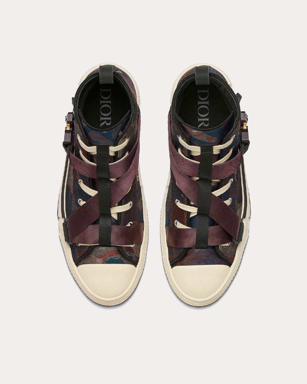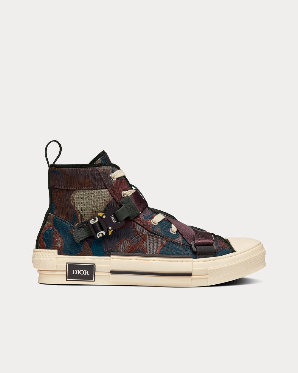 Baskets montantes en jacquard camouflage marron Dior x Peter Doig B23