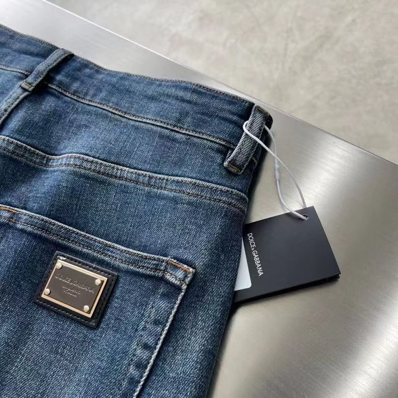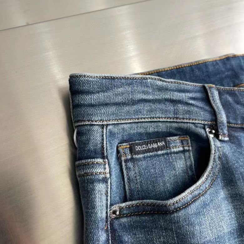 DOLCE GABBANA || Pantalon en denim décontracté délavé avec logo métallisé brodé