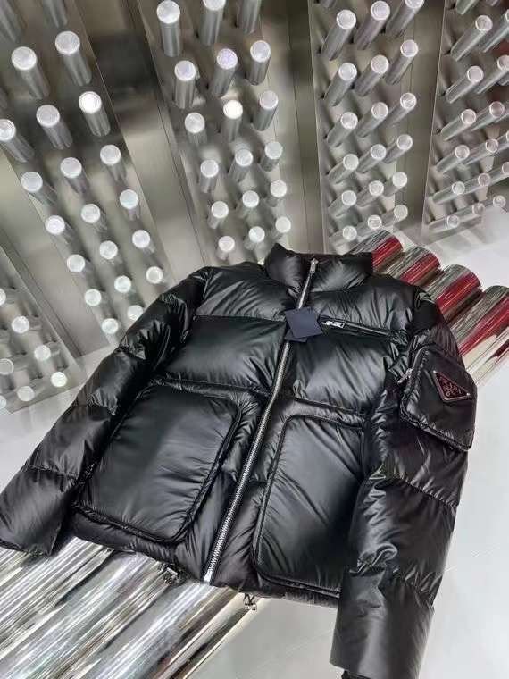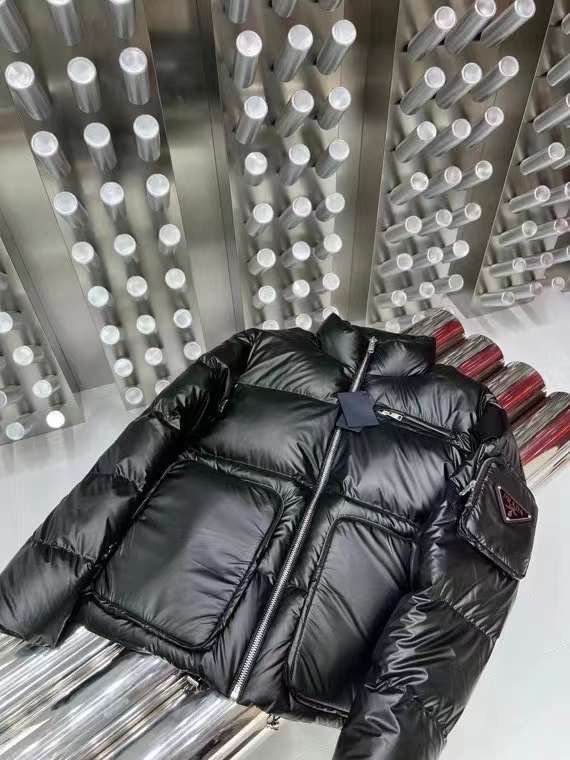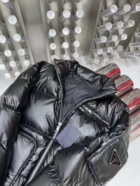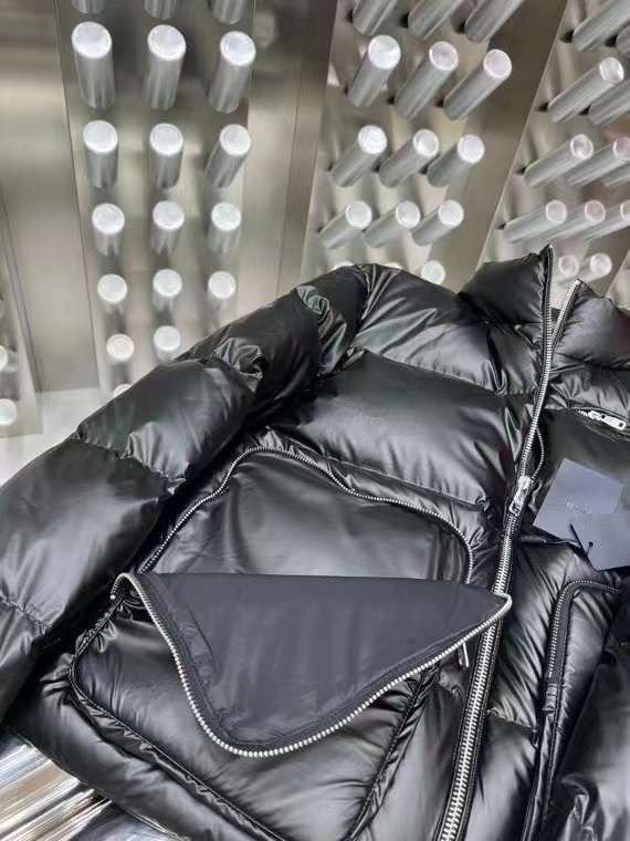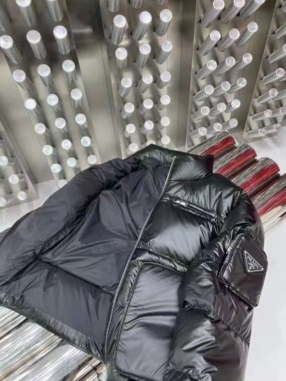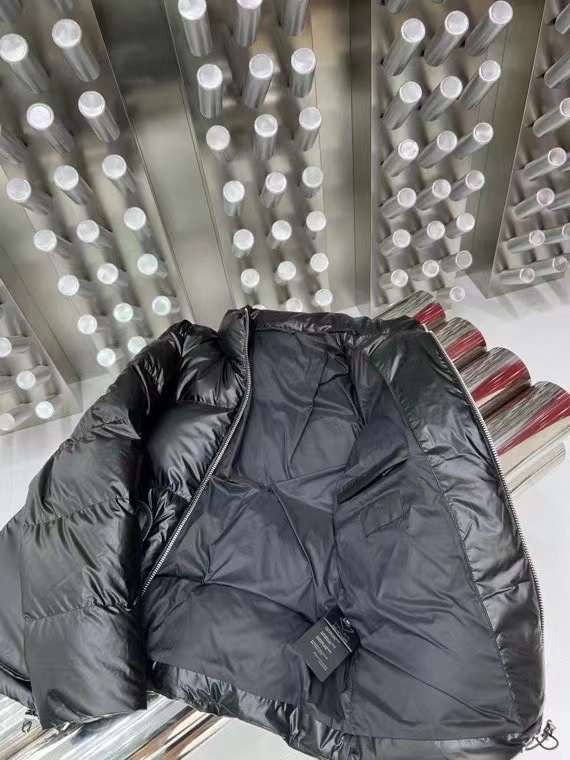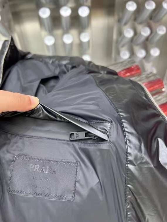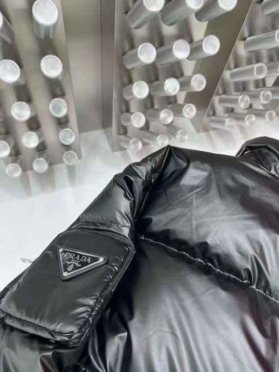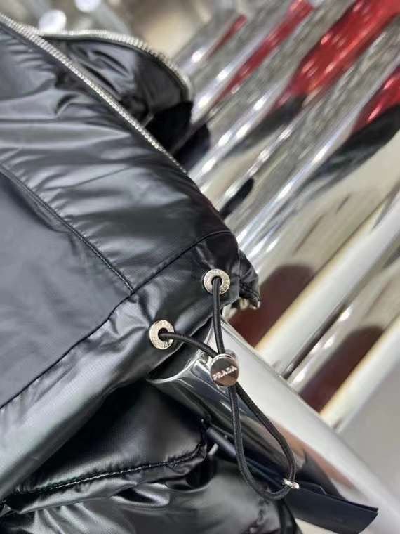 Doudoune à capuche en nylon léger noir PRADADoudoune à capuche en nylon léger noir PRADA