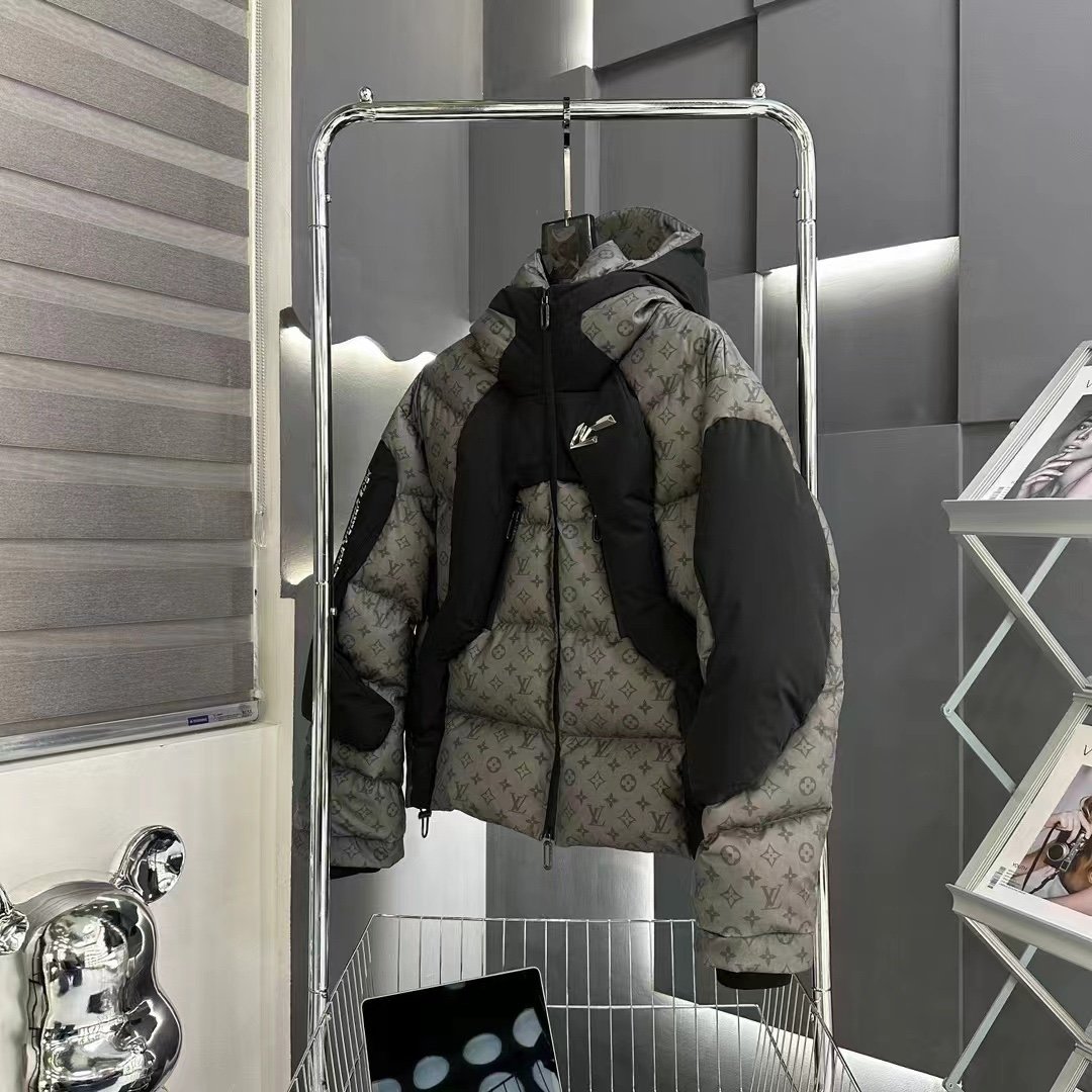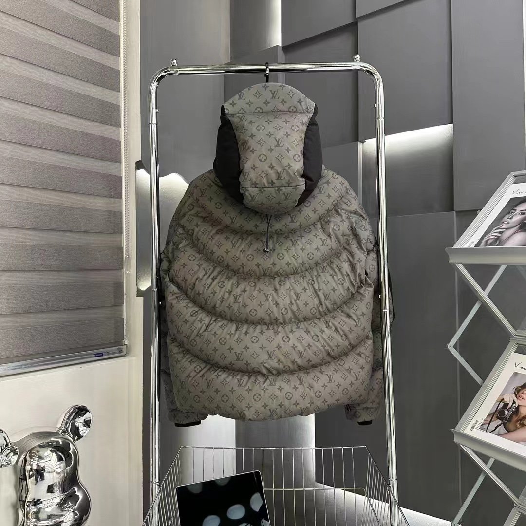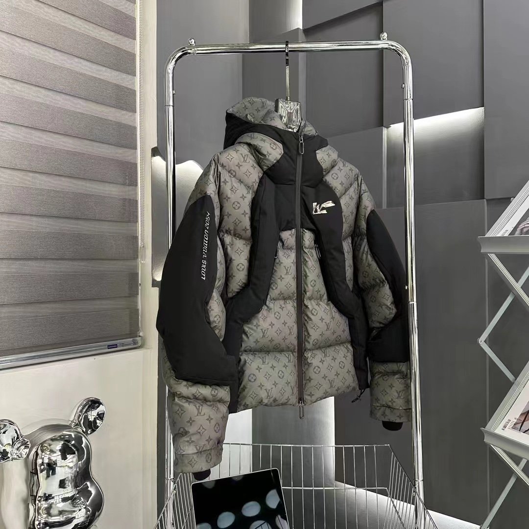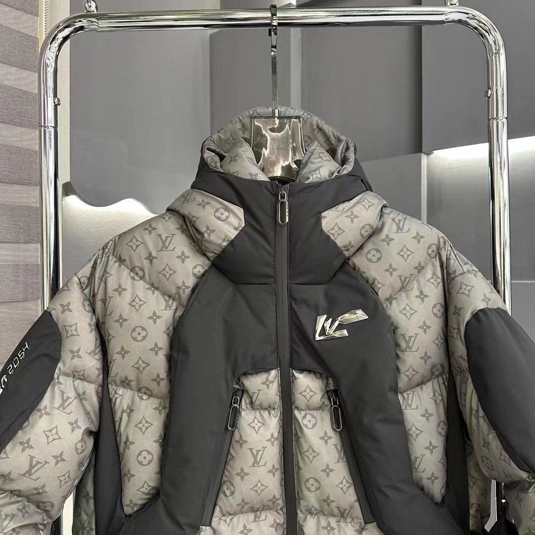 Découvrez la doudoune Monogram LV Grise, une pièce d’exception qui allie élégance, confort et allure moderne. Confectionnée dans un tissu technique haut de gamme, elle arbore le célèbre motif Louis Vuitton Monogram sur l’ensemble du corps, associé à des empiècements contrastés noirs sur la poitrine et les épaules.