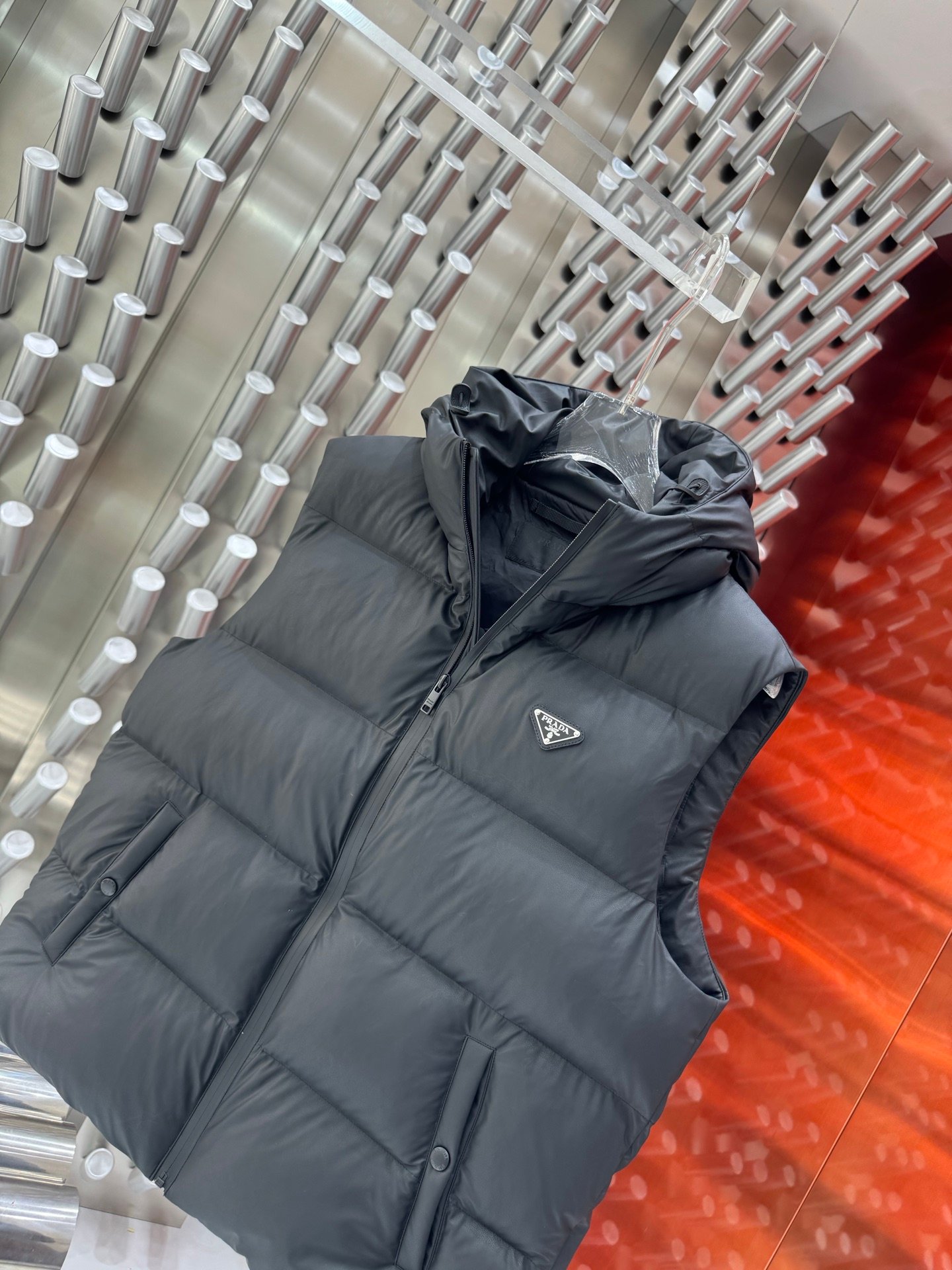 Apportez une touche d’élégance et de sophistication à votre garde-robe avec la Doudoune sans manche Prada. Conçue pour allier style et confort, cette pièce intemporelle est idéale pour sublimer vos tenues tout en vous protégeant du froid avec légèreté. Sa coupe raffinée et ses finitions impeccables en font un choix parfait pour les fashionistas exigeantes.