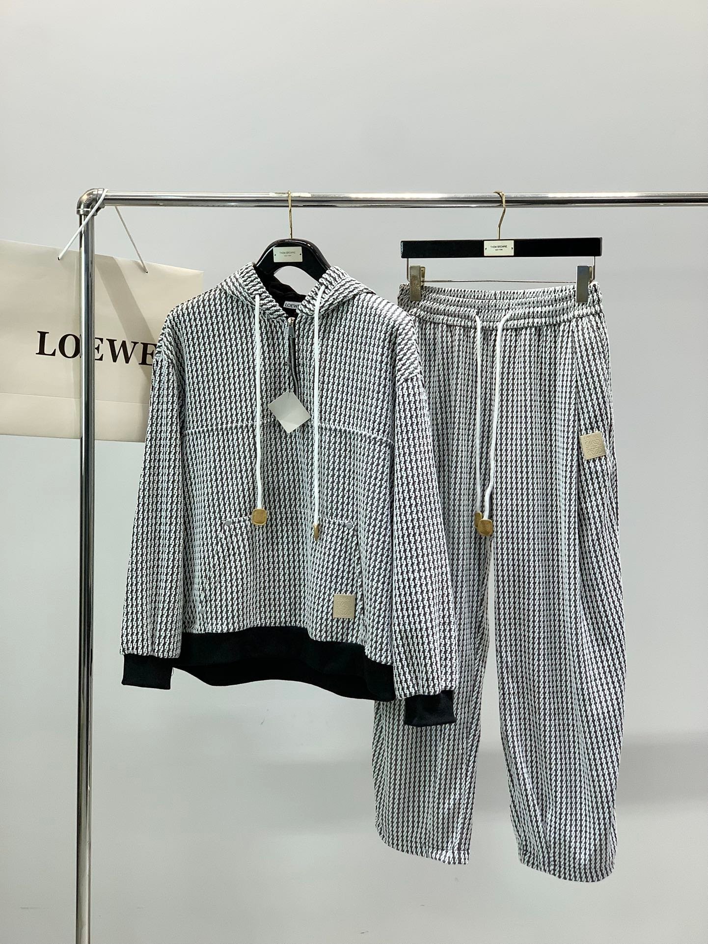 Découvrez l’élégance et le confort réunis dans l’Ensemble à capuche texturé zippé avec pantalon assorti de Loewe. Conçu pour ceux qui recherchent un style sophistiqué tout en assurant une aisance optimale, cet ensemble est idéal pour une tenue décontractée mais raffinée. Sa texture subtile et sa coupe moderne en font un incontournable de votre garde-robe.