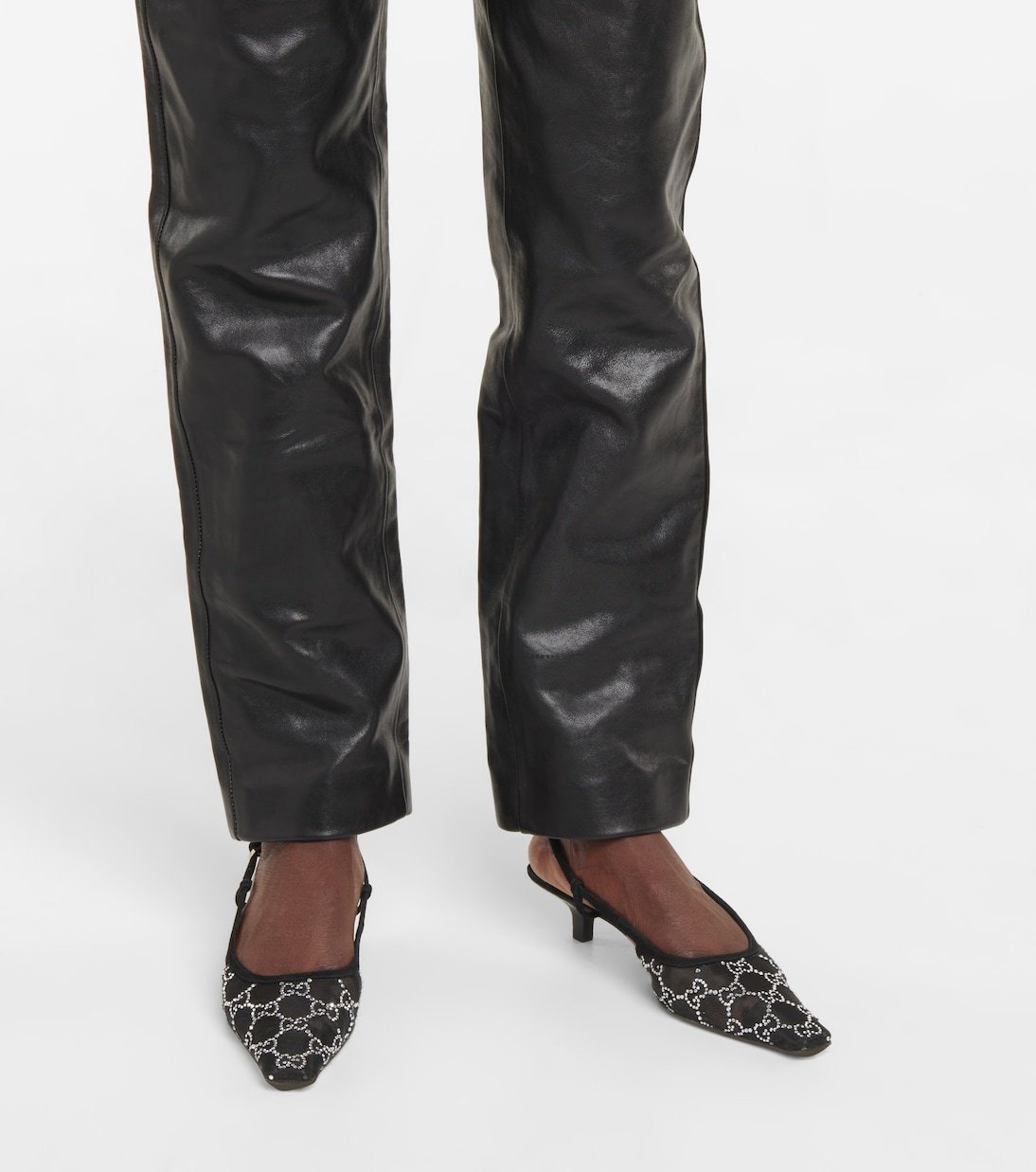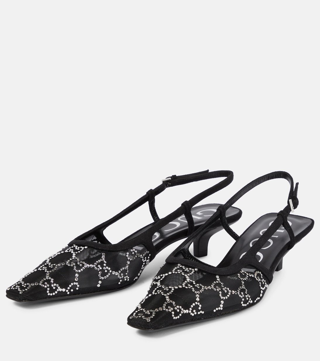 Escarpins Gucci Aria en résille noire avec cristaux GGEscarpins Gucci Aria en résille noire avec cristaux GG
