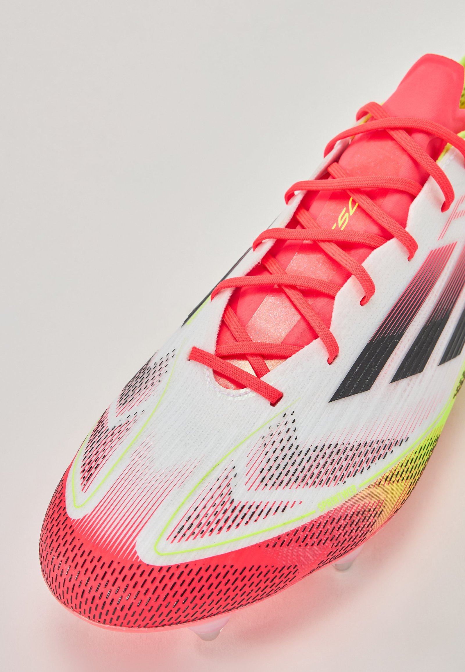 Matière et entretien Dessus / Tige : Matière synthétique Doublure : Synthétique Semelle de propreté : Synthétique Semelle d’usure : Matière synthétique / textile Épaisseur de la doublure : Doublure protégeant du froid Détails du produit Accélère le rythme avec la chaussure adidas F50 légère, créée pour la vitesse. Cette chaussure de football Elite possède une fine tige Fibertouch avec une languette de compression Tunnel pour un maintien parfait et une texture Sprintweb 3D pour t’aider à garder le ballon collé au pied en pleine action. Conçue pour les terrains humides, la semelle extérieure Sprintframe 360 assure des accélérations explosives.