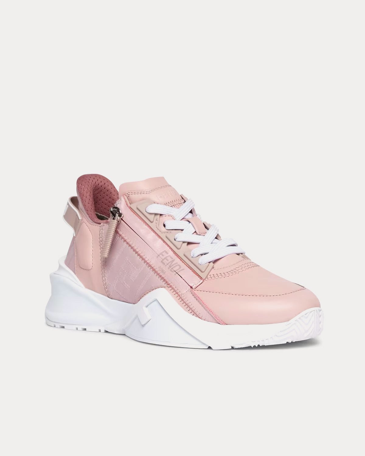 Les baskets basses Fendi Flow pour femme en cuir sont dotées d’une fermeture zippée, d’une languette en caoutchouc personnalisée et d’une étiquette logo embossée sur le talon. Fabriquées en Italie.