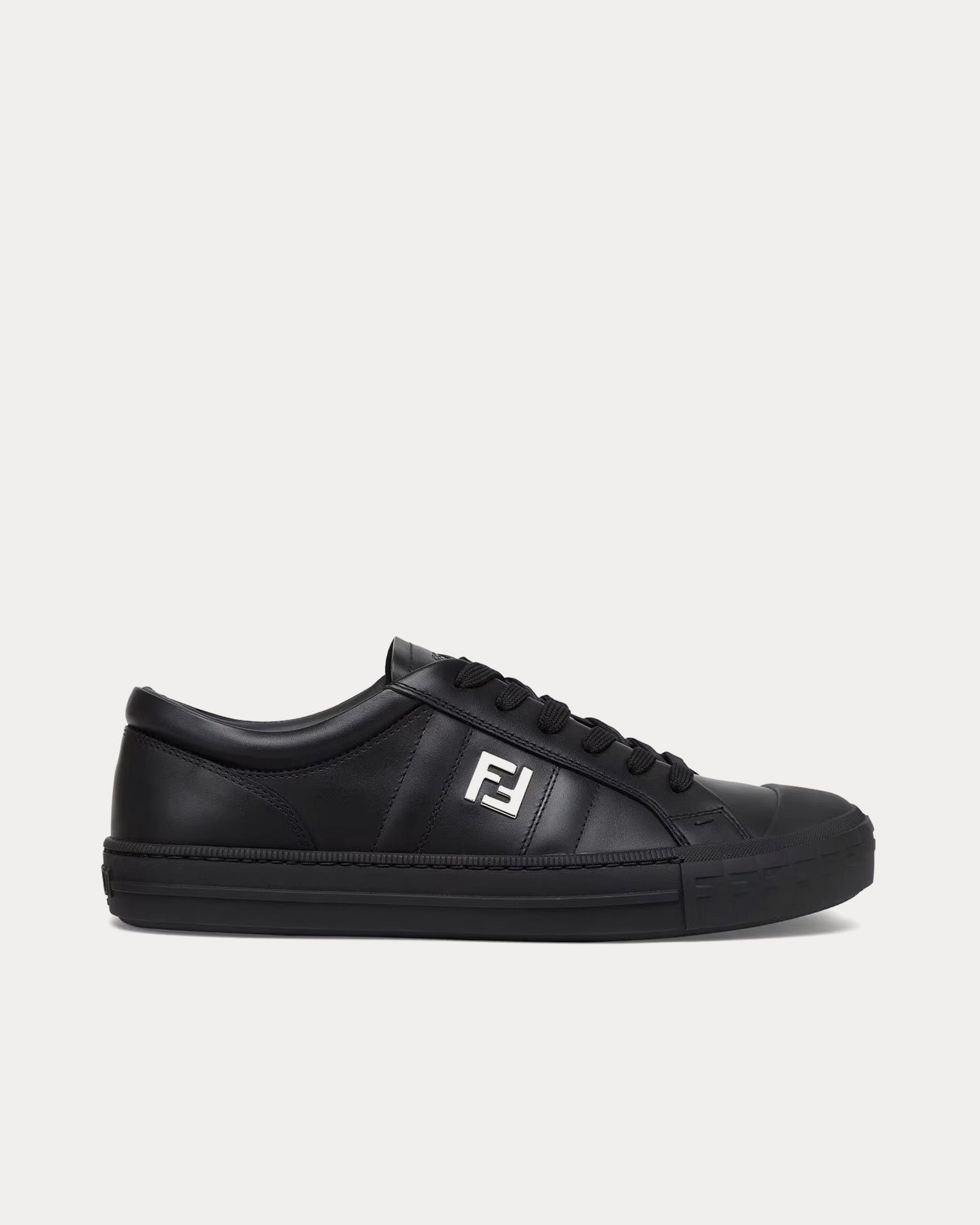 Le détail marquant est le logo FF en métal finition palladium sur le côté, ajoutant une touche sophistiquée à cette silhouette minimaliste. Une semelle cuvette en caoutchouc assure durabilité et confort, tandis que le motif FF en relief sur le bout rehausse le look signature Fendi.