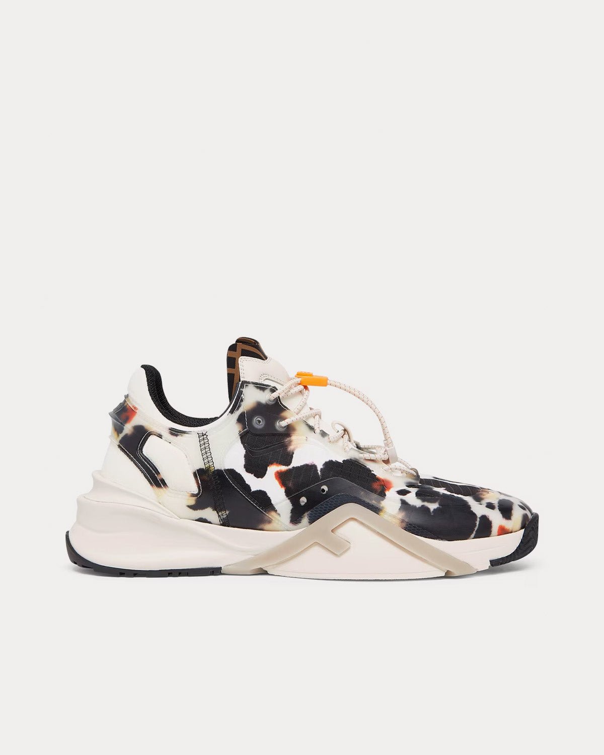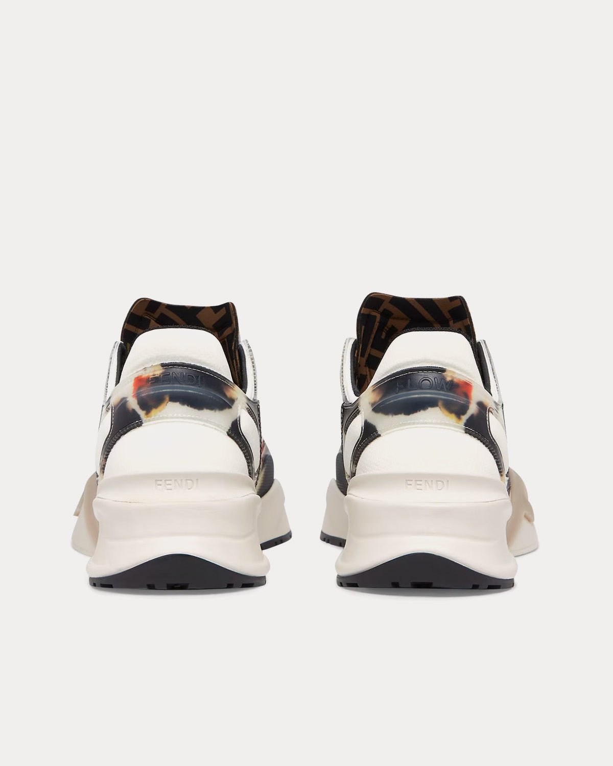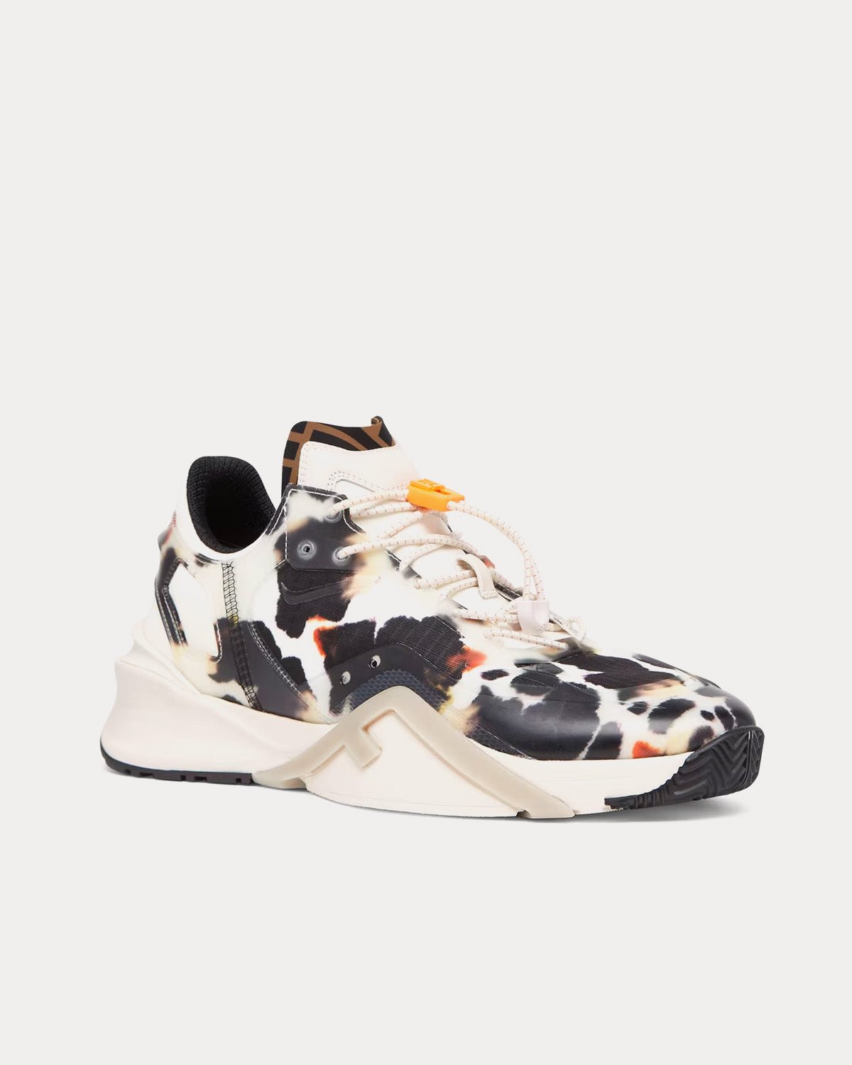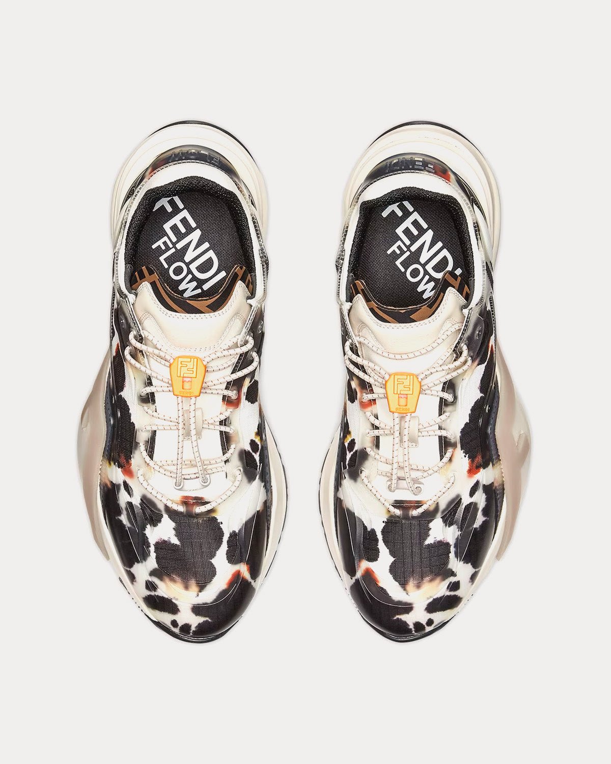 Les baskets basses Fendi Flow Fabric pour homme sont dotées de lacets élastiques réglables, d’un stoppeur FF et d’une semelle ondulée ornée d’un F gravé. Le talon est estampé du lettrage Fendi Flow. Le tissu technique utilisé pour la confection de ces chaussures arbore un imprimé animalier noir et blanc, rehaussé d’un revêtement injecté et de détails en Lycra® ornés du motif FF. Les semelles légères en caoutchouc blanc arborent un F diagonal gris clair, pour un style et un confort optimaux. Fabriquées en Italie.