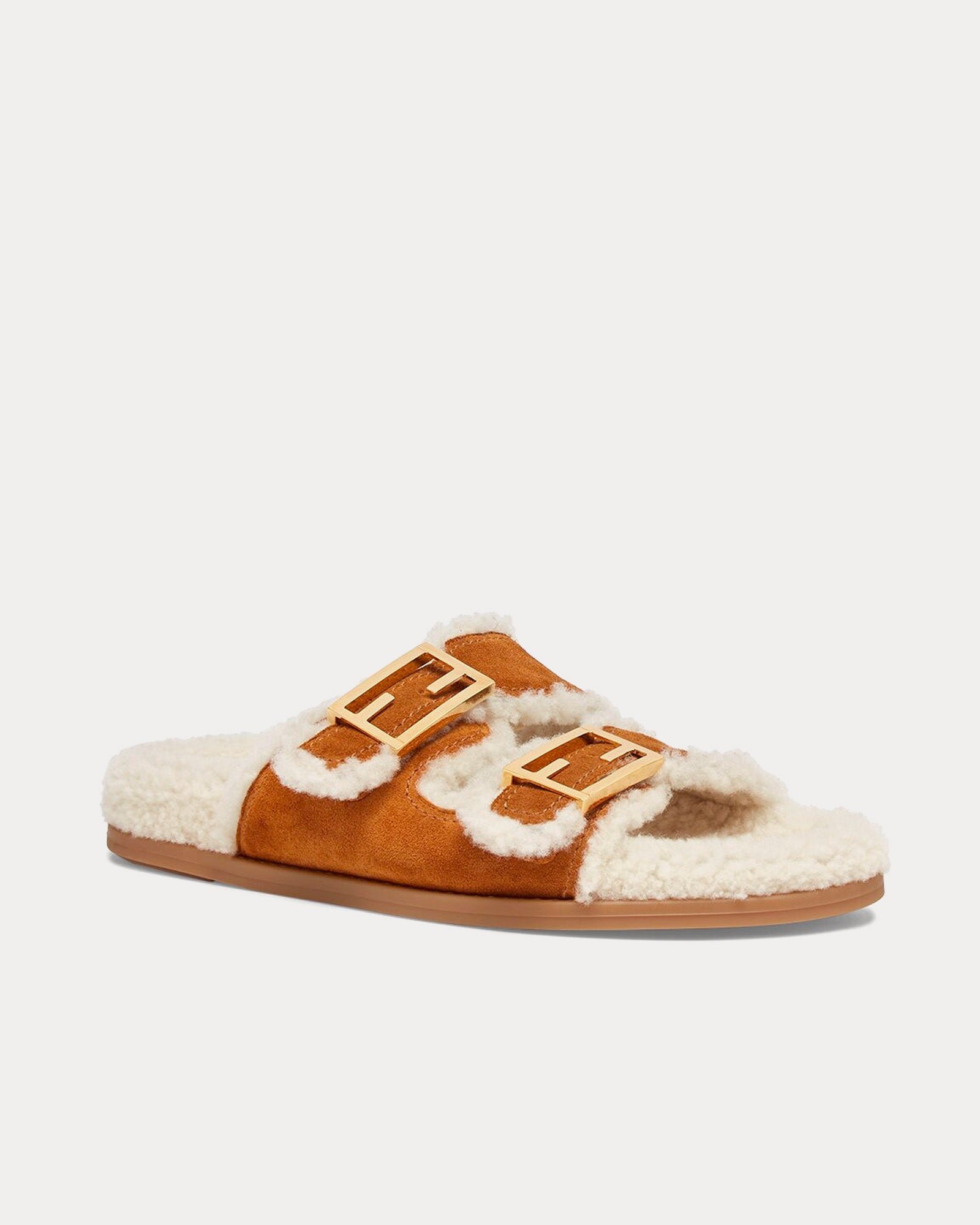 Claquettes Fendi Feel en peau de mouton beige