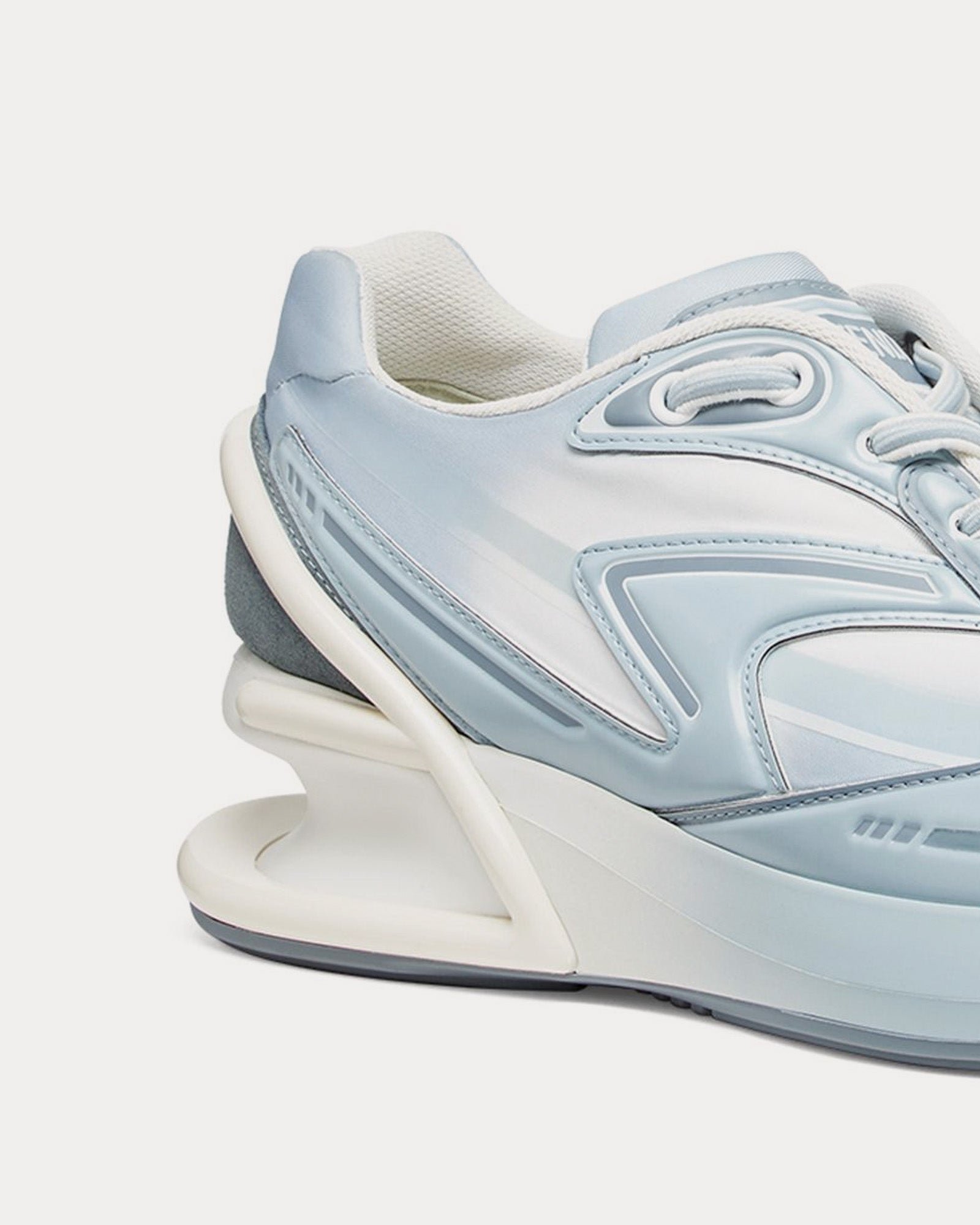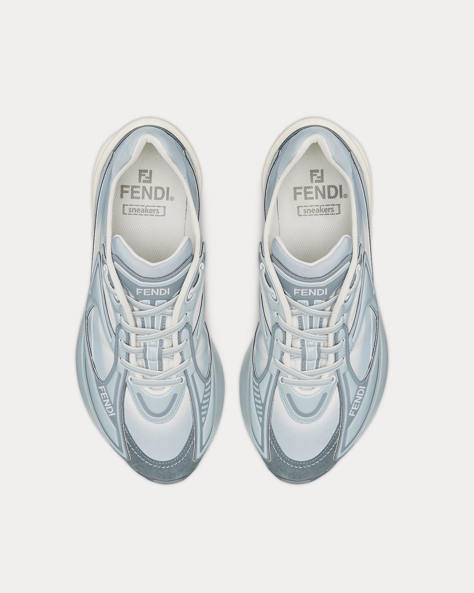 Les baskets basses pour femme Fendi First 1 de couleur bleue sont confectionnées en tissu technique et présentent des semelles ondulées avec un détail sculpté en forme de F diagonal, un insert Framilon et une sérigraphie Fendi personnalisée sur la languette et le côté. Fabriquées en Italie.