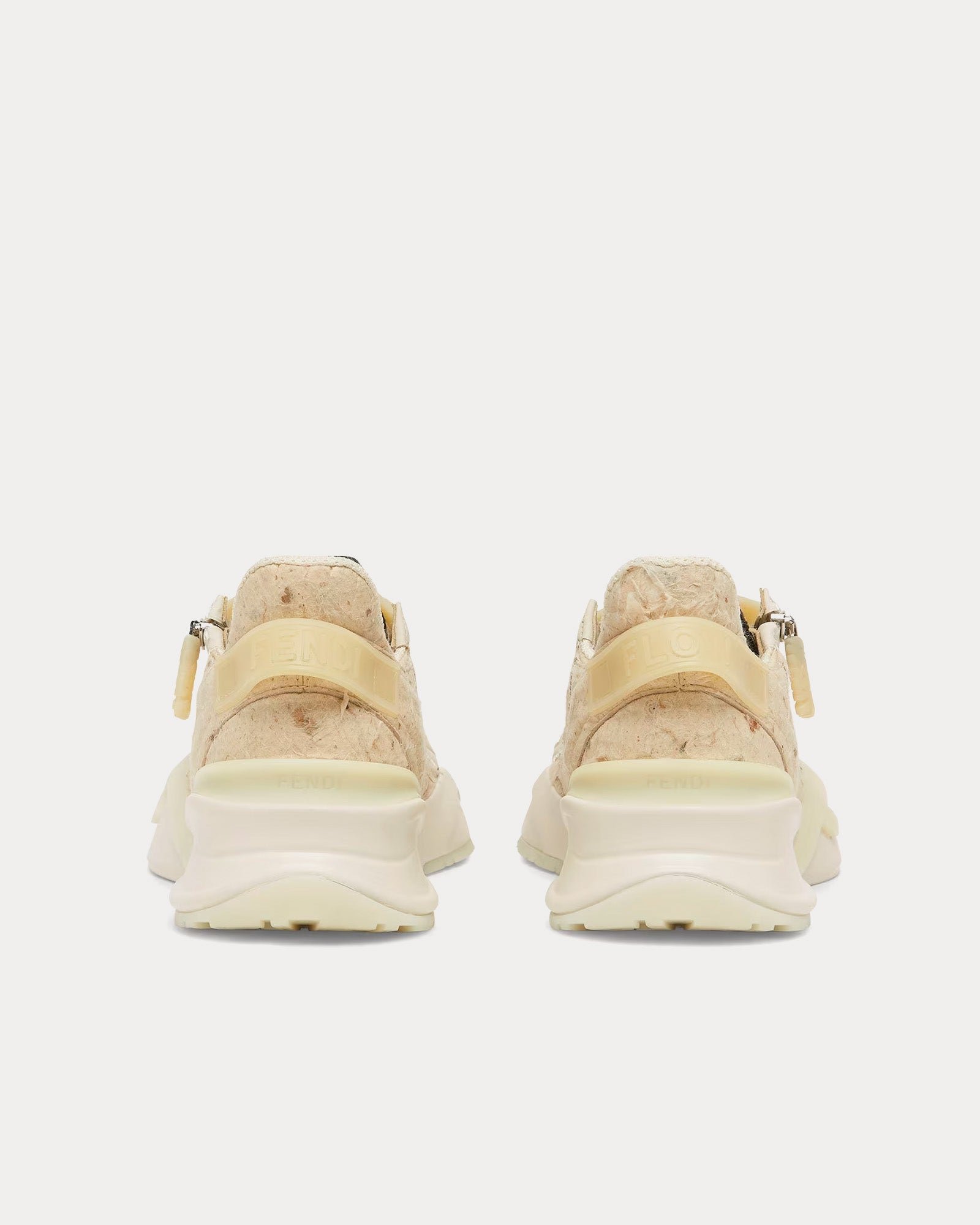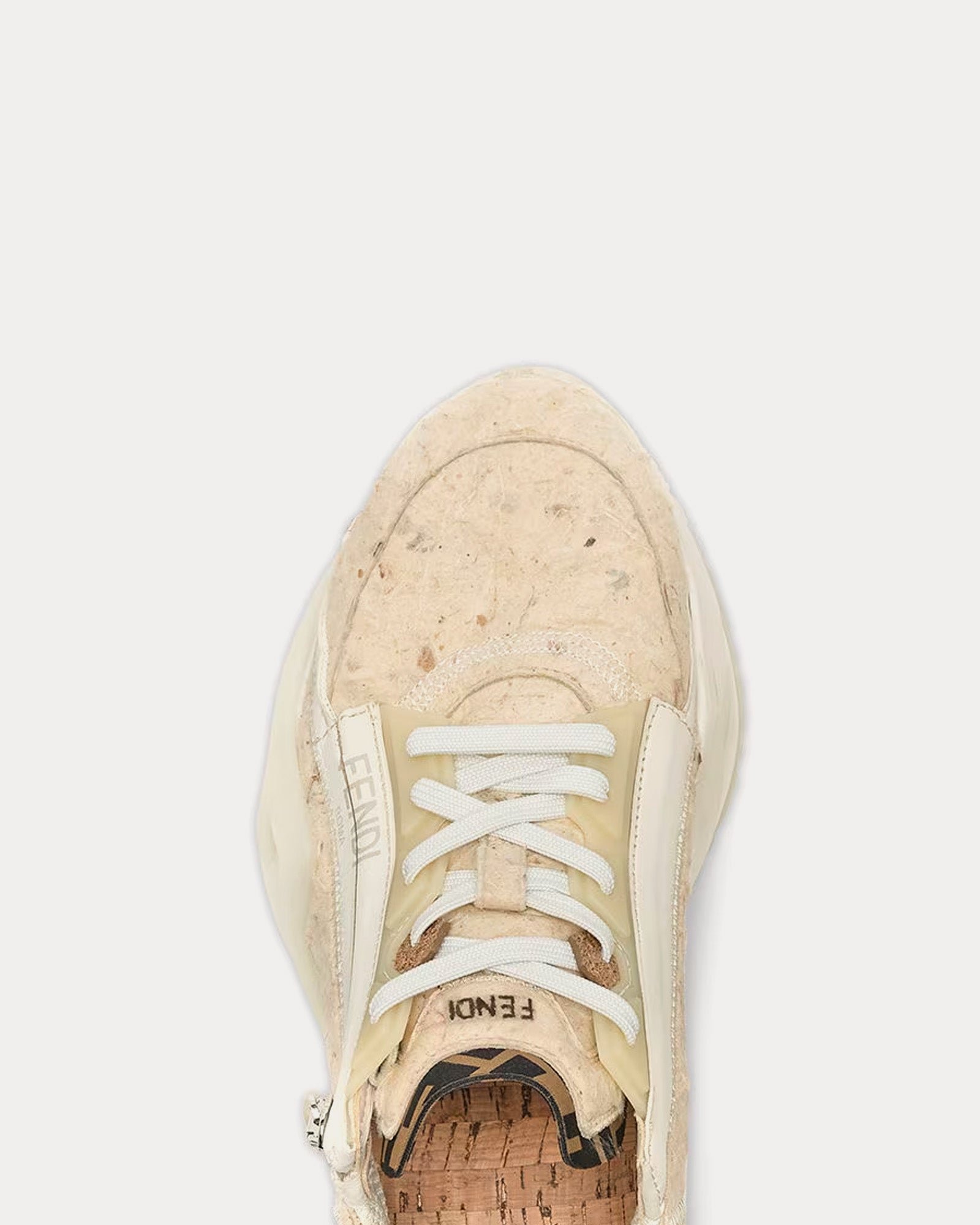 Les baskets basses pour hommes Fendi x Kengo Kuma Flow en papier washi naturel sont nées de la conversation entre Silvia Venturini Fendi et l’architecte japonais Kengo Kuma et d’une expérimentation avec des matériaux naturels interprétés par le savoir-faire Fendi. Les baskets sont dotées de lacets élastiques, d’une fermeture éclair latérale et d’une semelle ondulée avec le lettrage F. Fendi Flow gravé en relief sur les talons. Fabriquées en papier Washi couleur naturelle, fabriquées à la main au Japon et traitées en Italie pour plus de résistance, elles sont ornées de détails en Lycra® avec motif FF, de semelles blanches légères en matière végétale, de détails F beiges en diagonale et de semelles en liège avec inscription Fendi Kengo Kuma. Fabriquées en Italie.