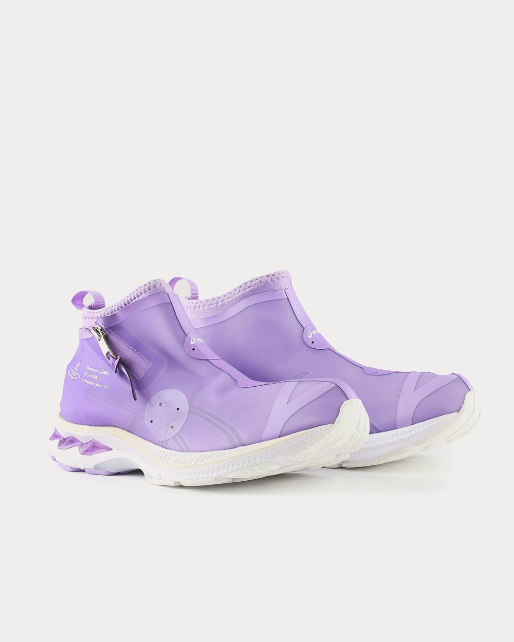 Vivienne Westwood has again teamed up with renowned sports brand ASICS to create the GEL-KAYANO™ 27 LTX in vapour purple. Its inner sock construction is overlaid with semi-translucent TPU material inspired by Vivienne Westwood’s archive latex stockings. Finished with FLYTEFOAM™ technology to the midsole, the shoes offer excellent rebound and cushioning. The mix of design innovation and advanced technology is at the core of this collaboration, as is durability and functionality.