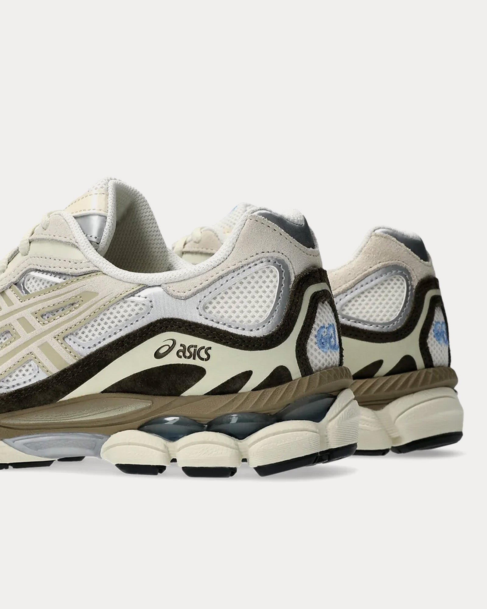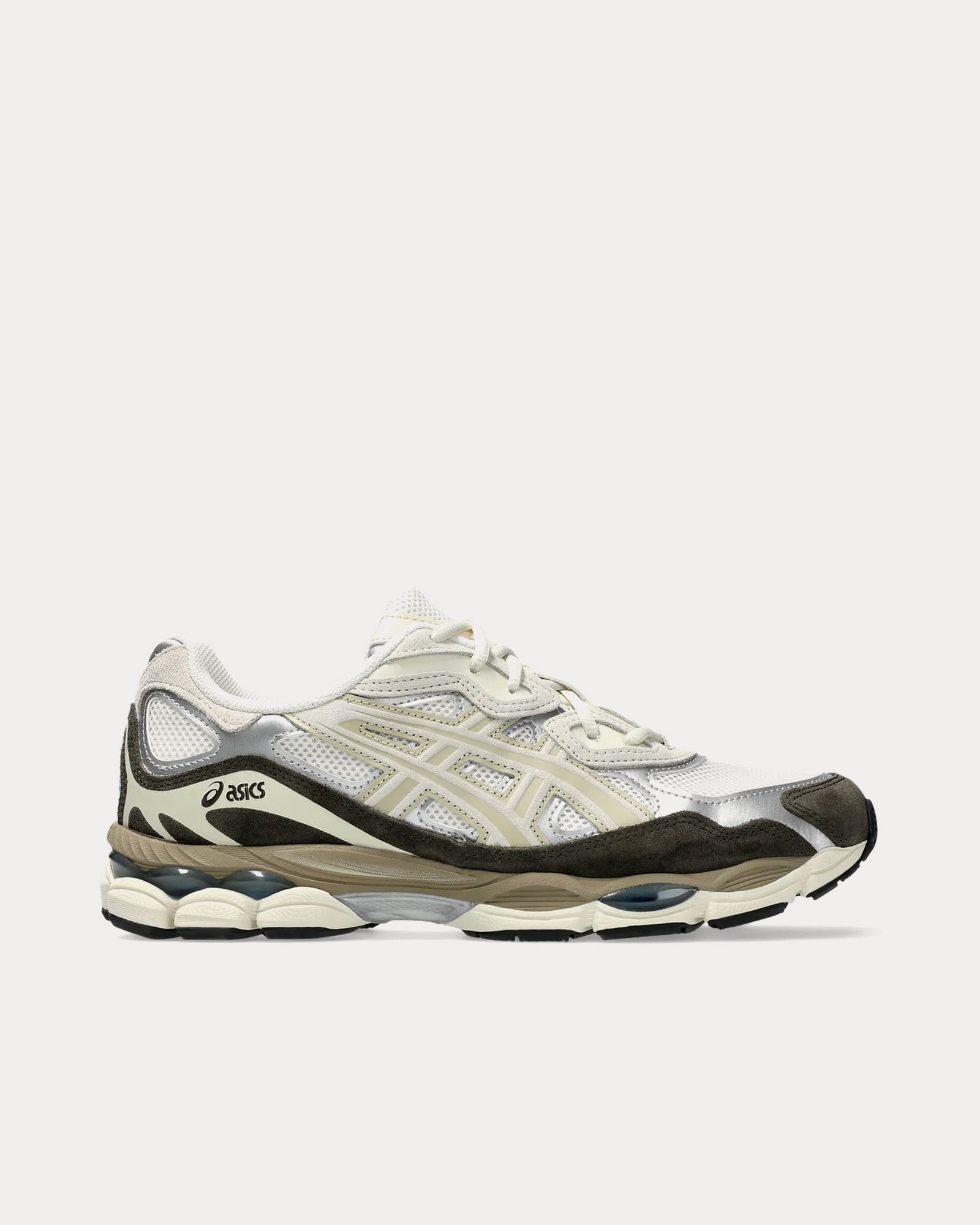 The unisex AsicsGel-NYC low top sneakers in beige, cream, and cream are inspired by heritage and modern performance running styles with an upper is inspired by the GEL-NIMBUS 3 and MC-PLUS V shoes and rearfoot and forefoot GEL™ technology for comfort in everyday scenarios.