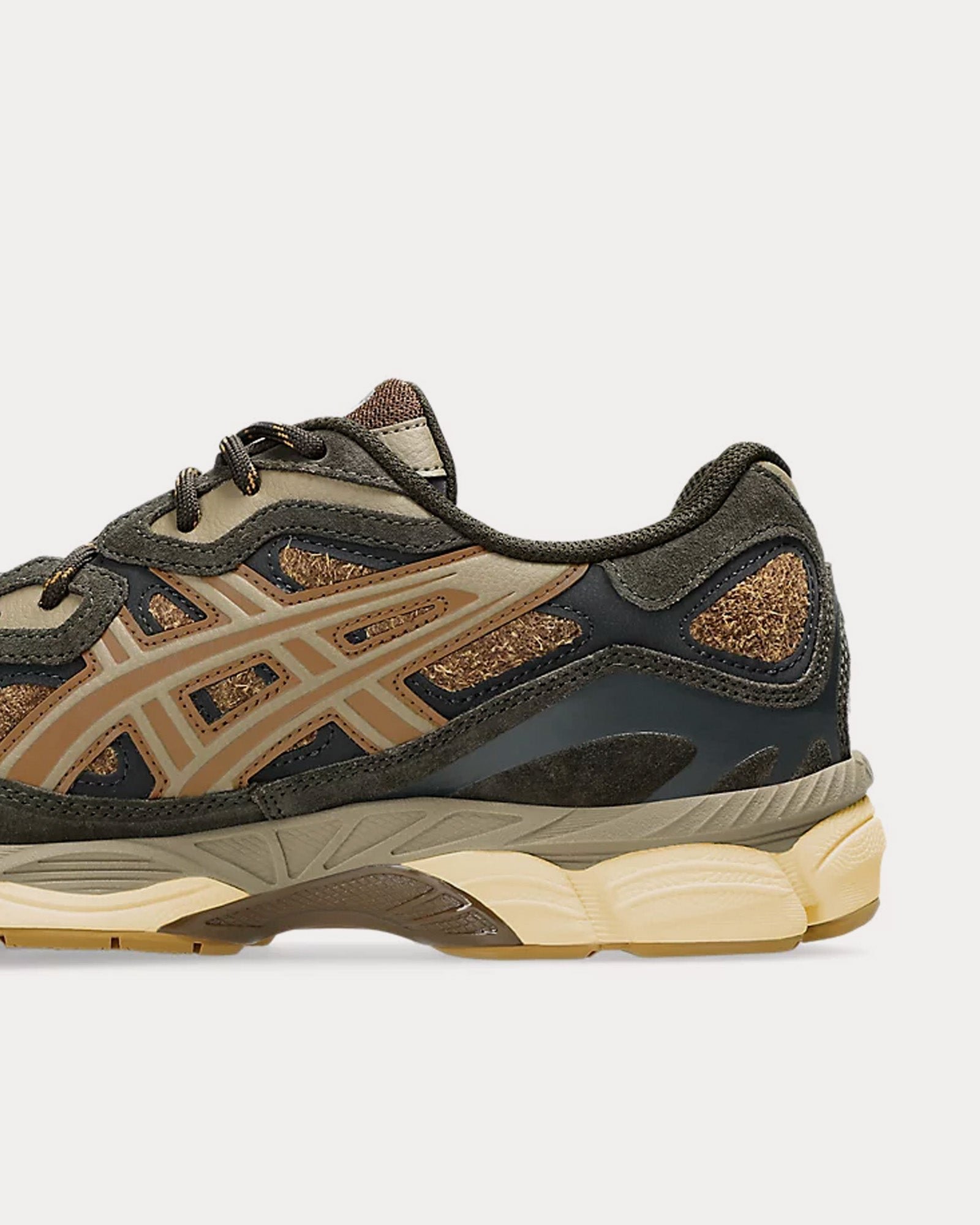 The unisex AsicsGel-NYC low top sneakers in brown storm and tan presidio are inspired by heritage and modern performance running styles with an upper is inspired by the GEL-NIMBUS 3 and MC-PLUS V shoes and rearfoot and forefoot GEL™ technology for comfort in everyday scenarios.